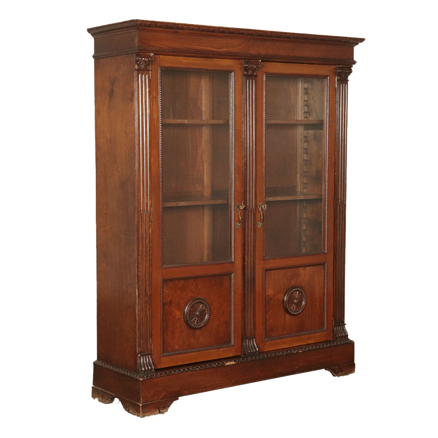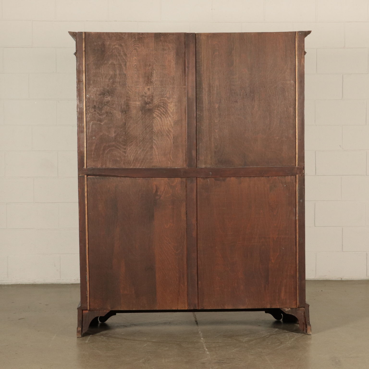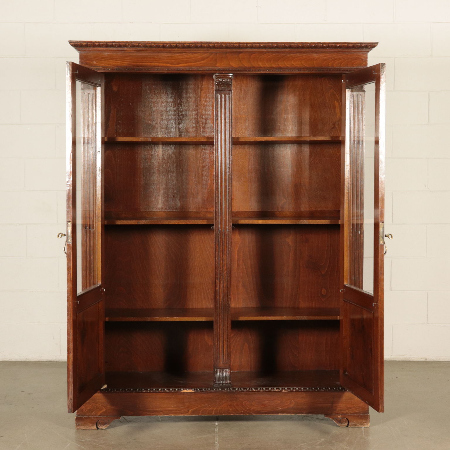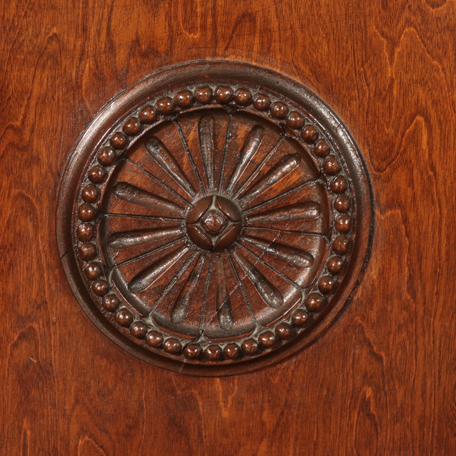 Ventana de puertas de estilo con dos paneles de vidrio, y una rosa en la ventana de la tallada. Puestos rudentati, cornisas y capiteles tallados.
