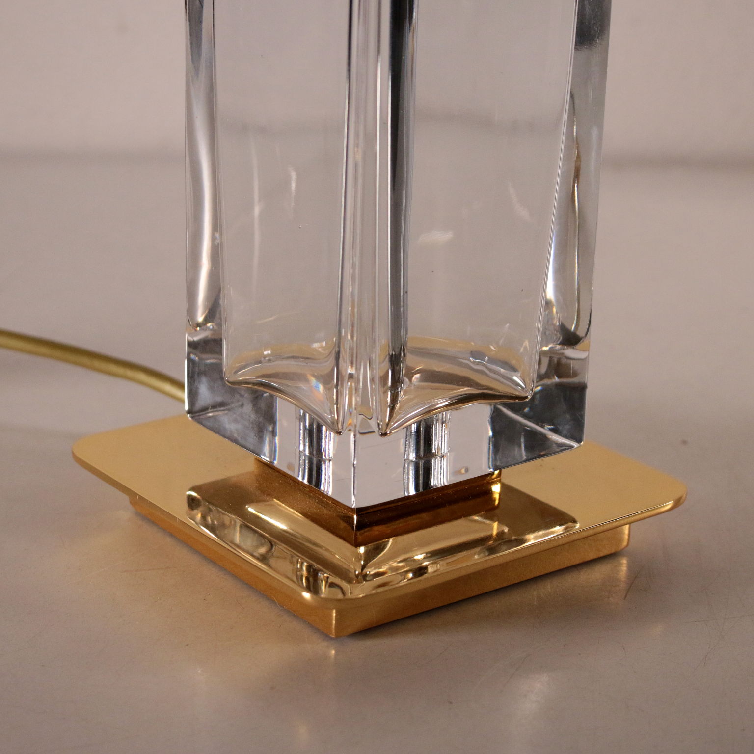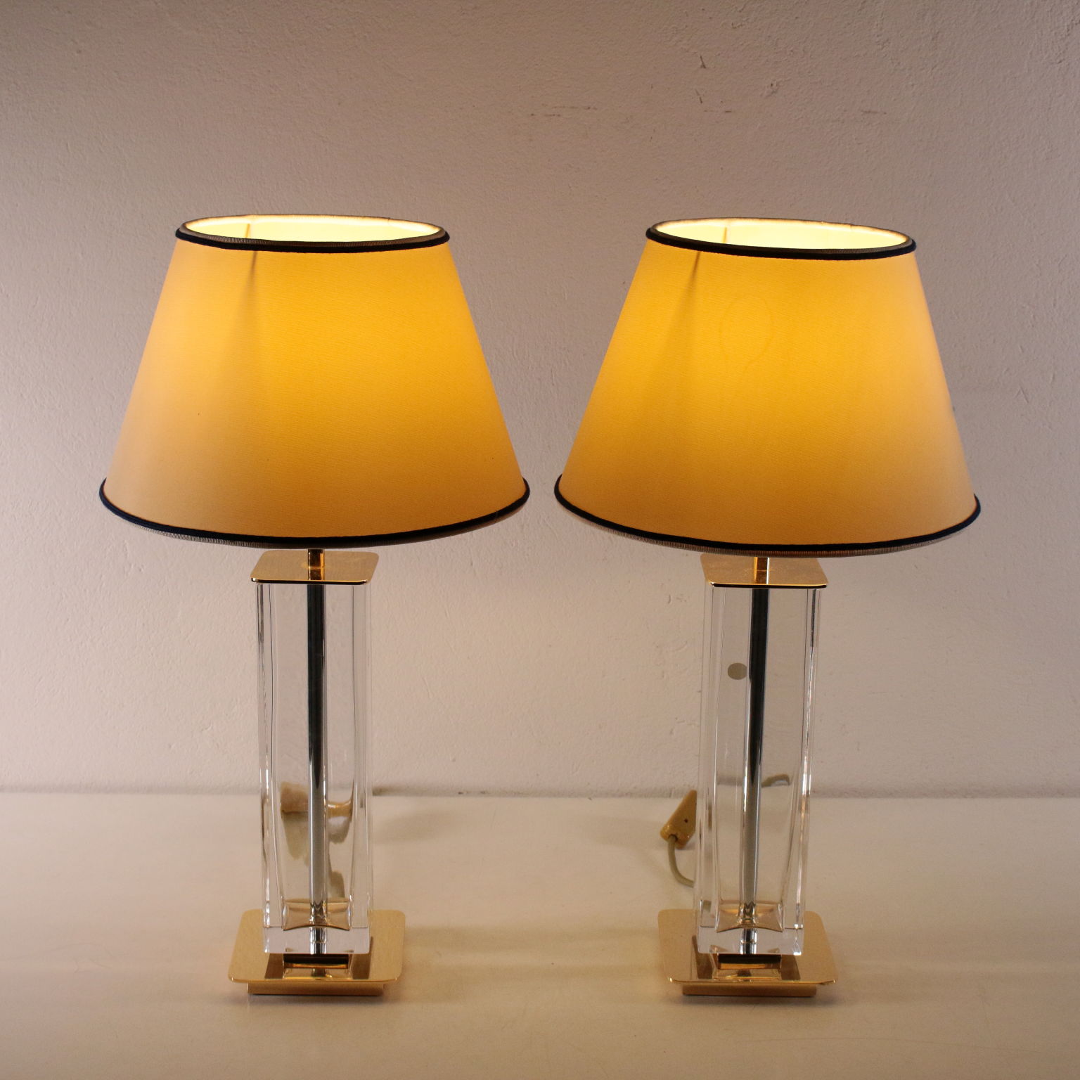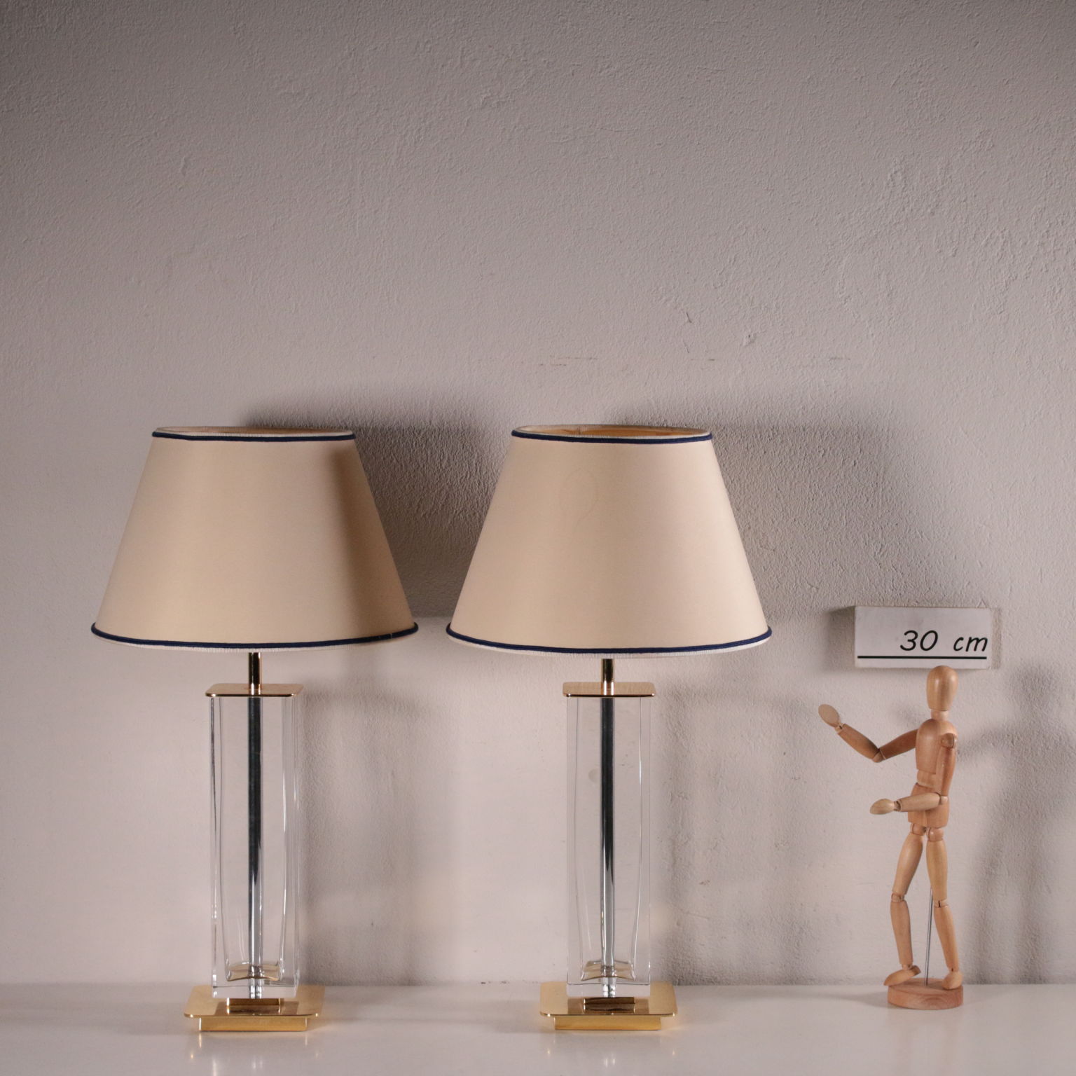 Par de lámparas de Zonca de latón y cristal. La etiqueta engomada de la fabricación debajo de la base.