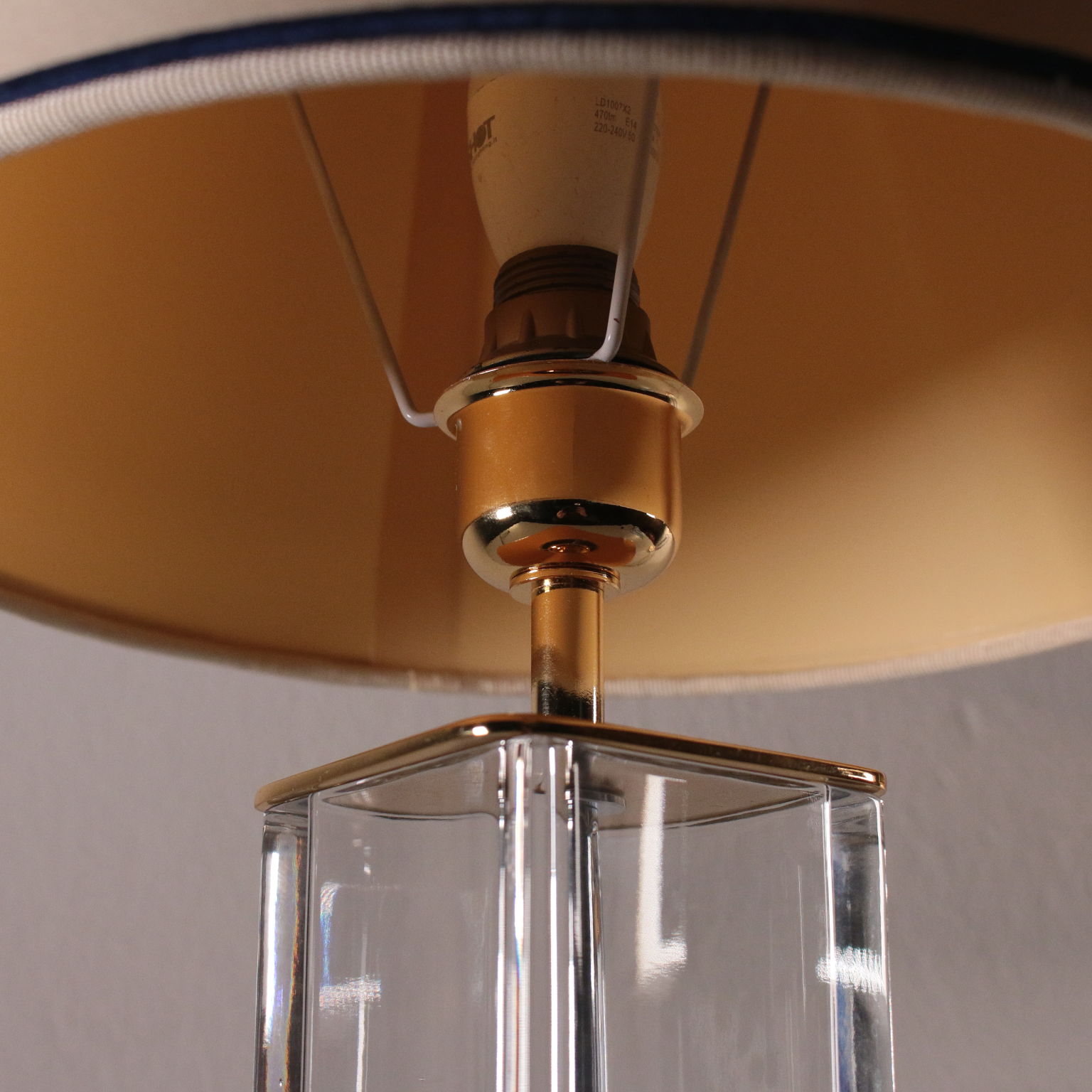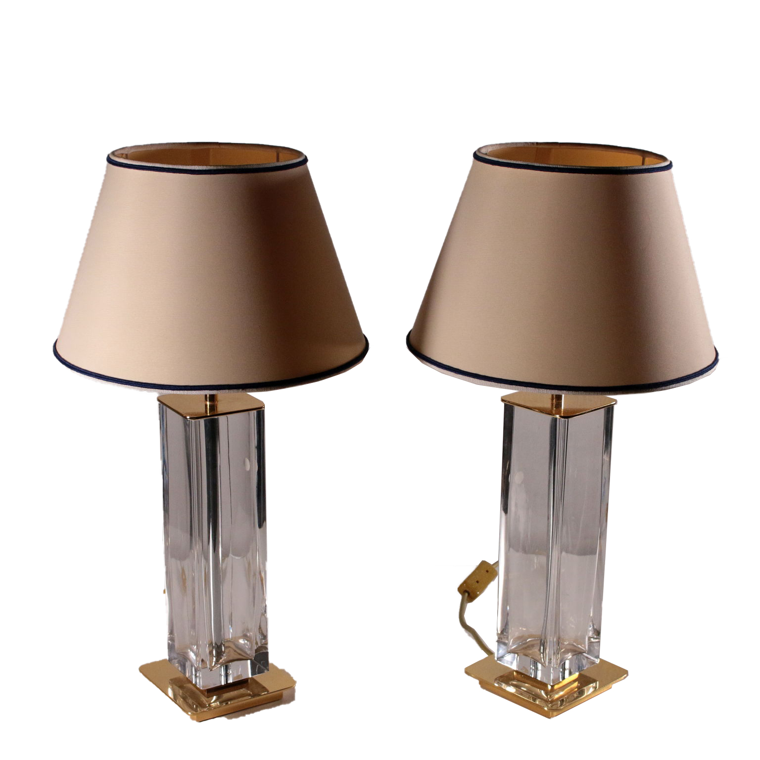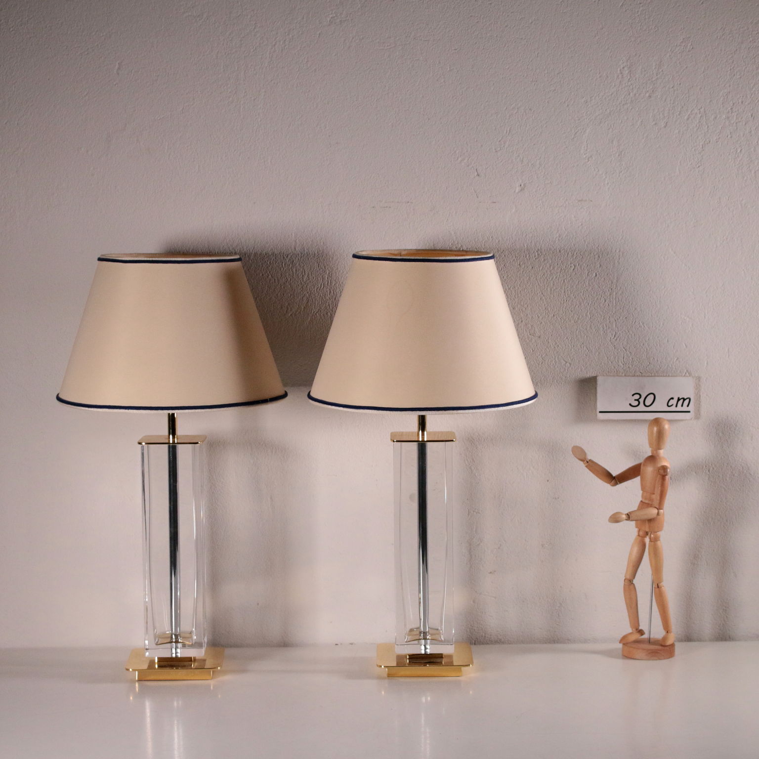 Par de lámparas de Zonca de latón y cristal. La etiqueta engomada de la fabricación debajo de la base.