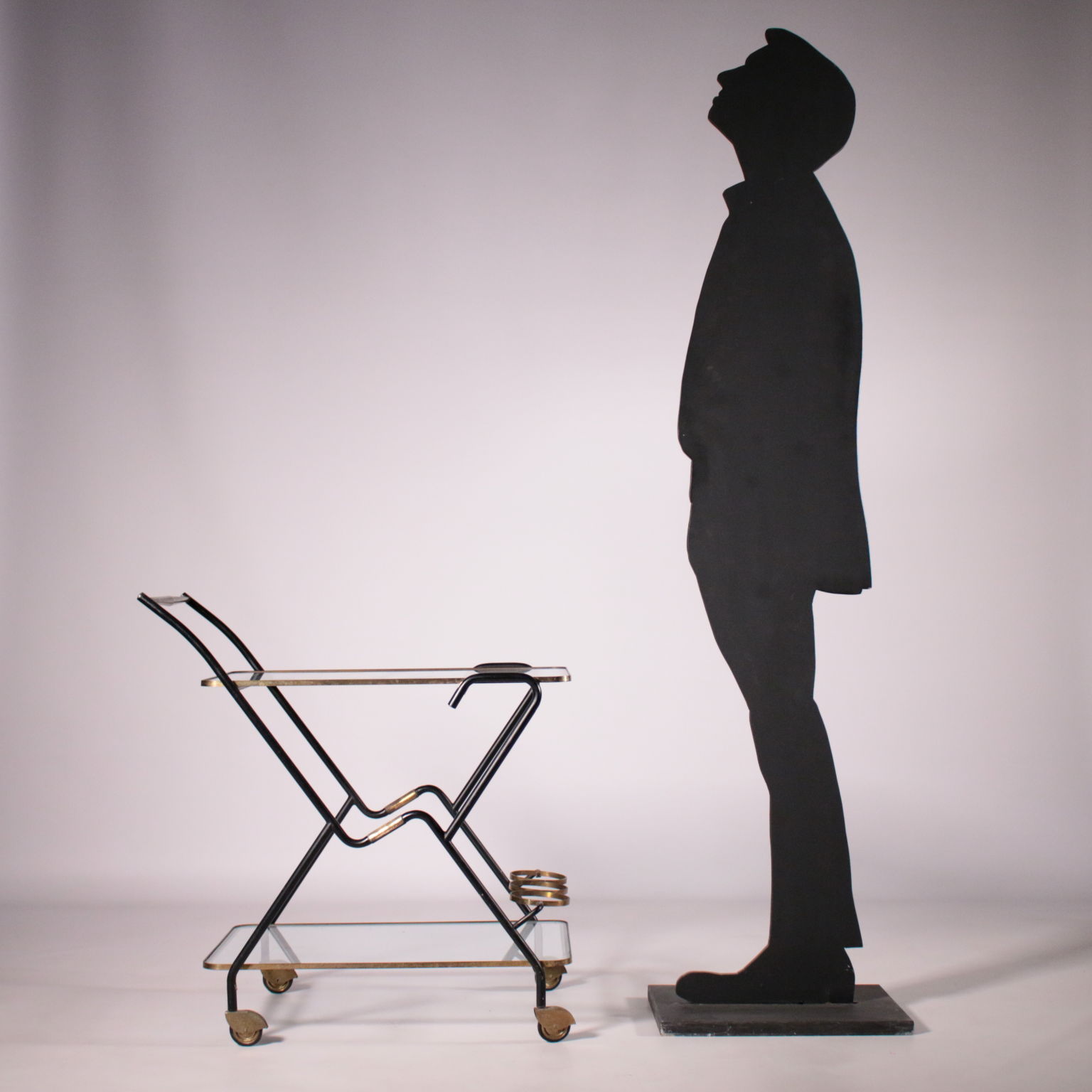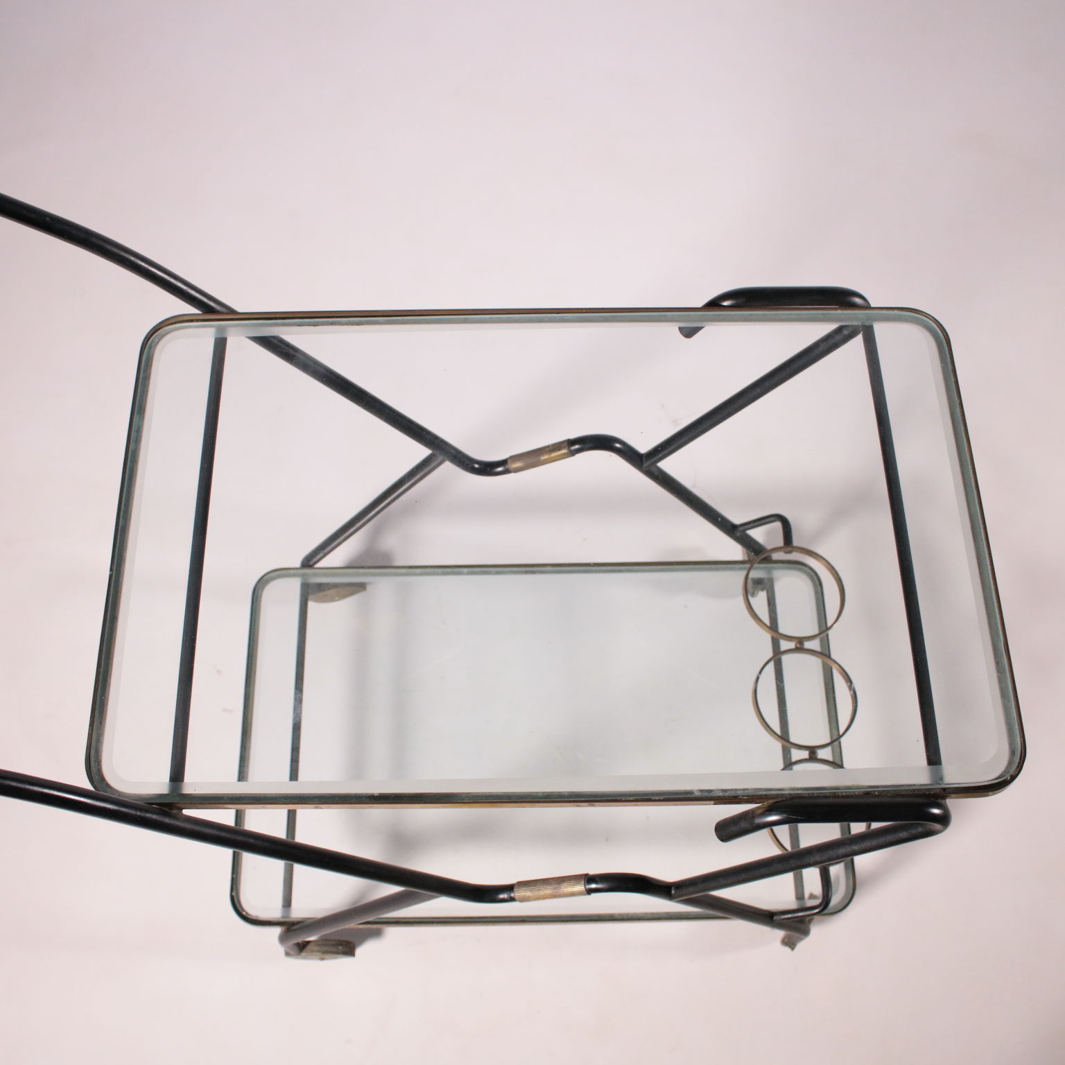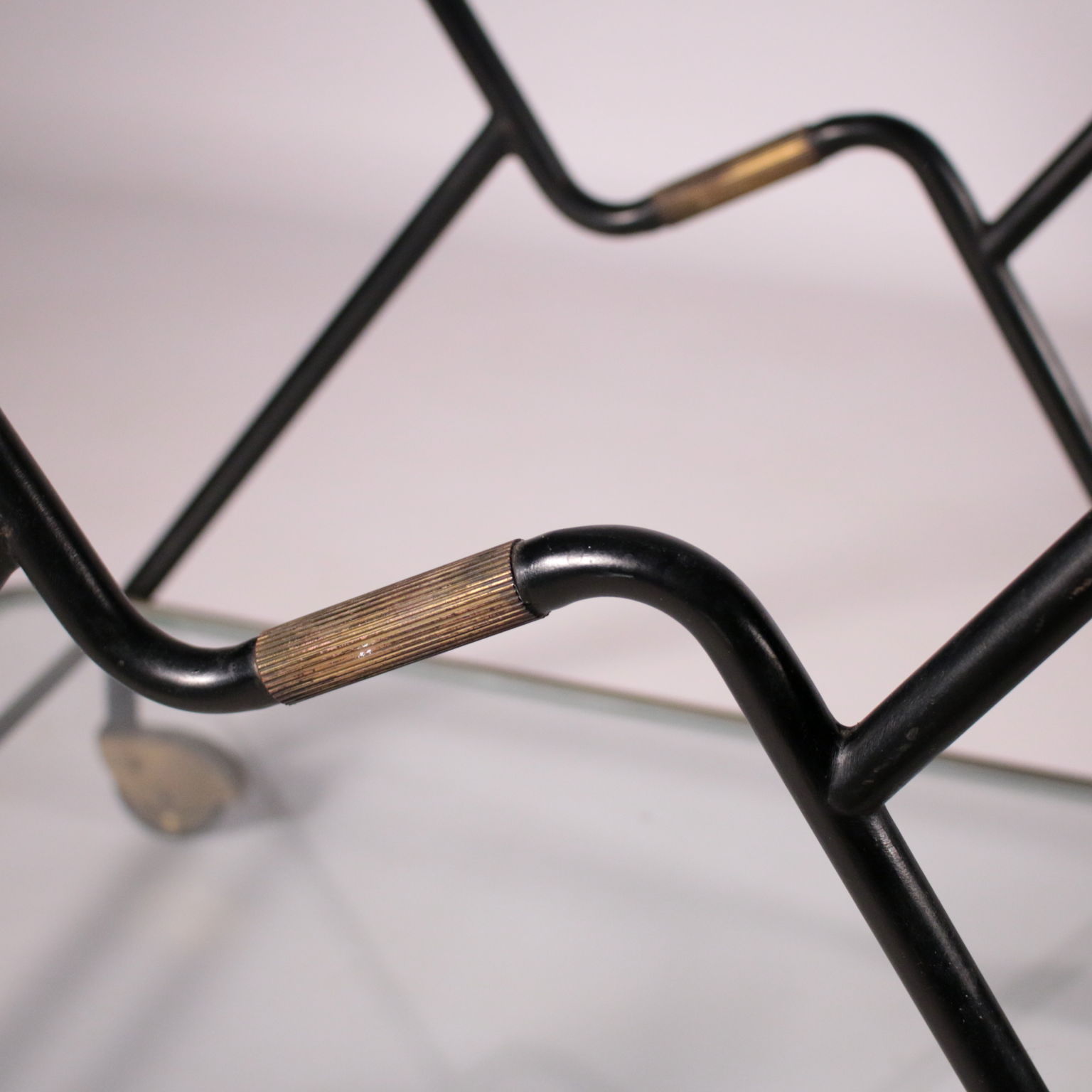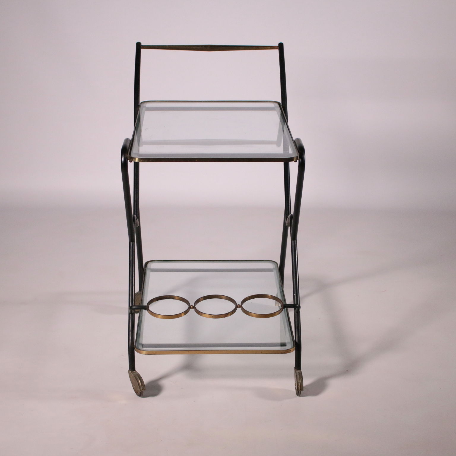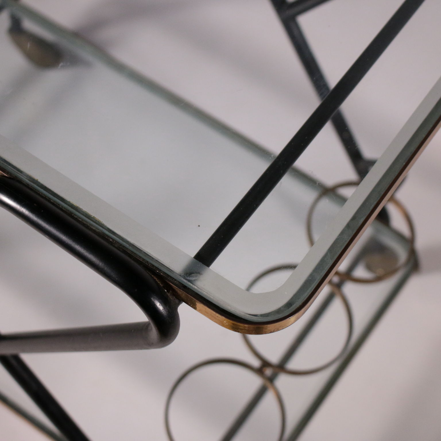 Carro de servicio con el titular de la botella, el metal, latón, vidrio.