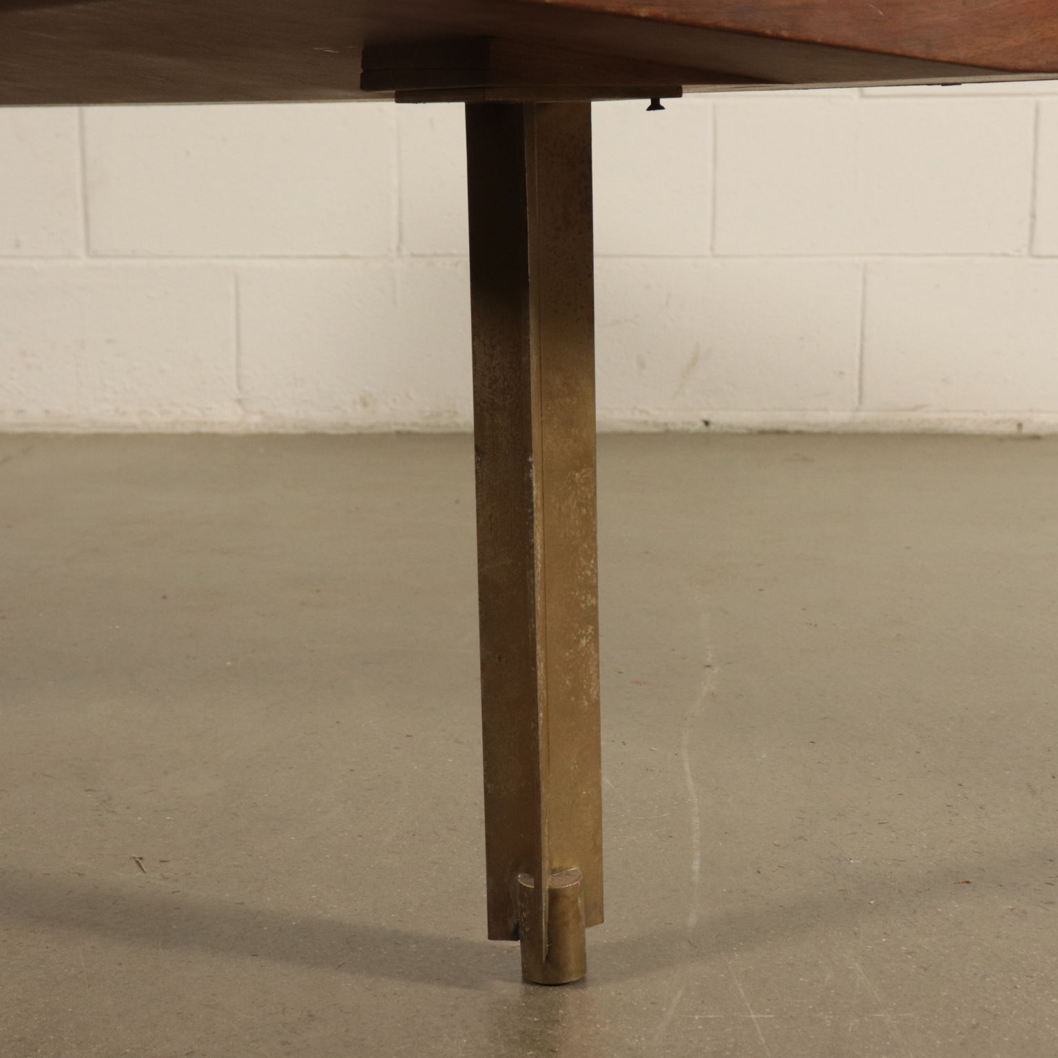 Banco de la esquina de chapa de madera, madera de teca, de latón piernas.