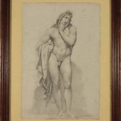 El lápiz sobre el papel. Este es un estudio, probablemente una copia de la verdadera de la obra escultórica. Presentado en un elegante ambiente.