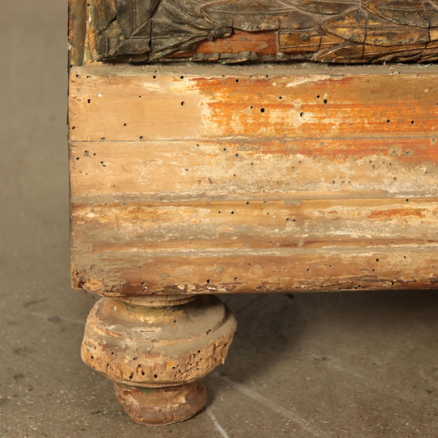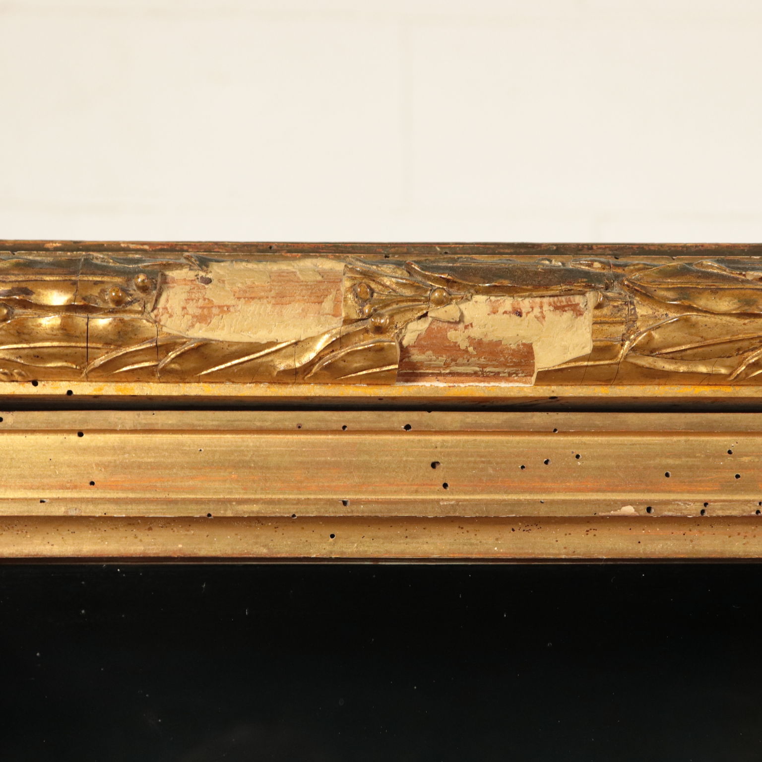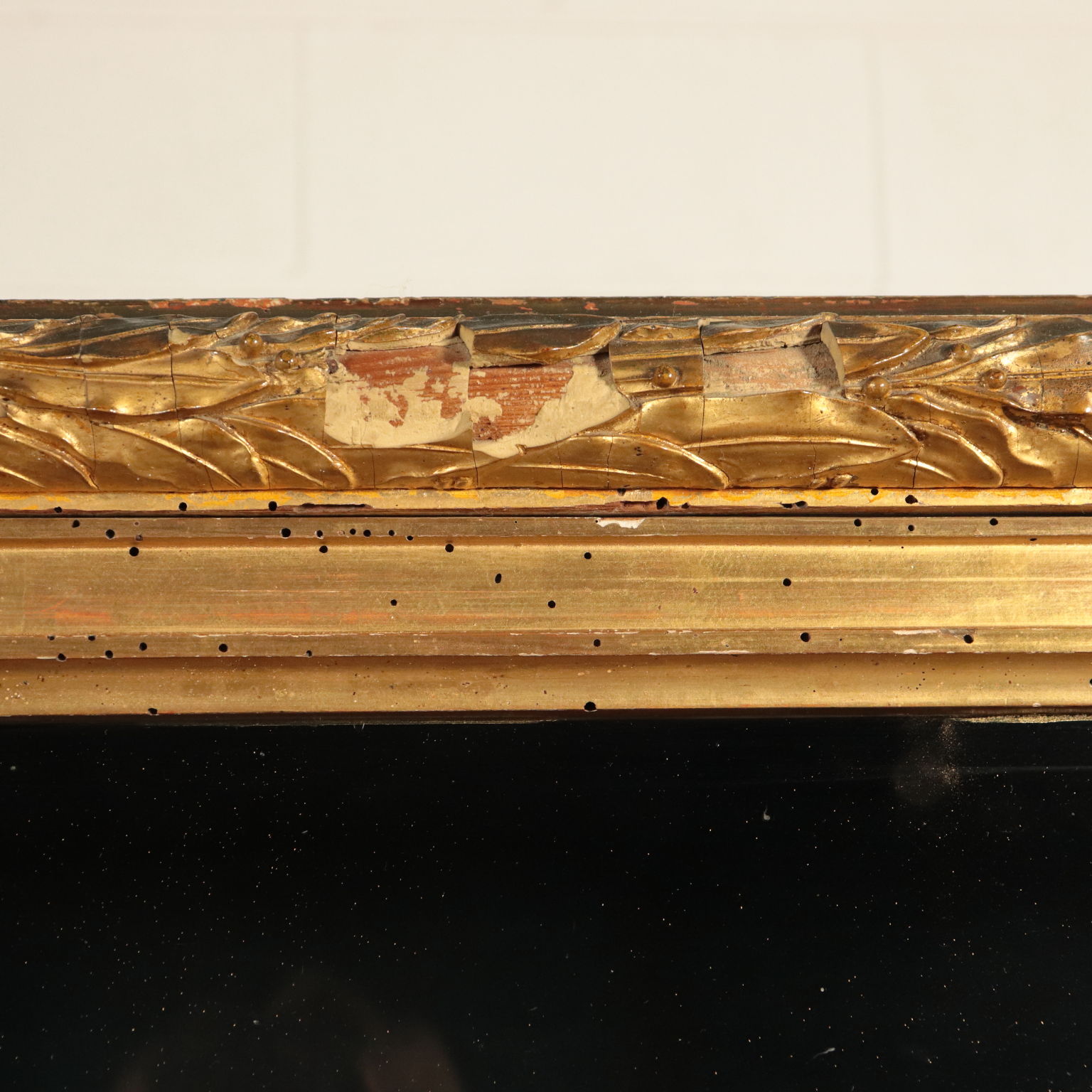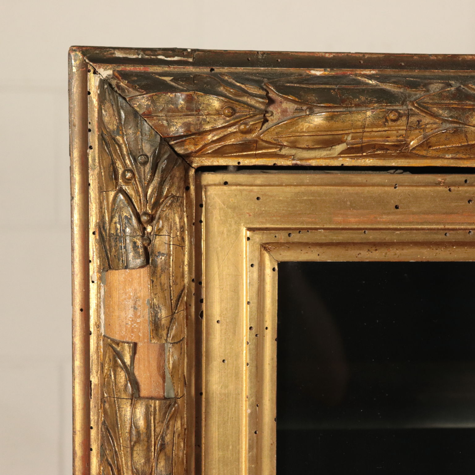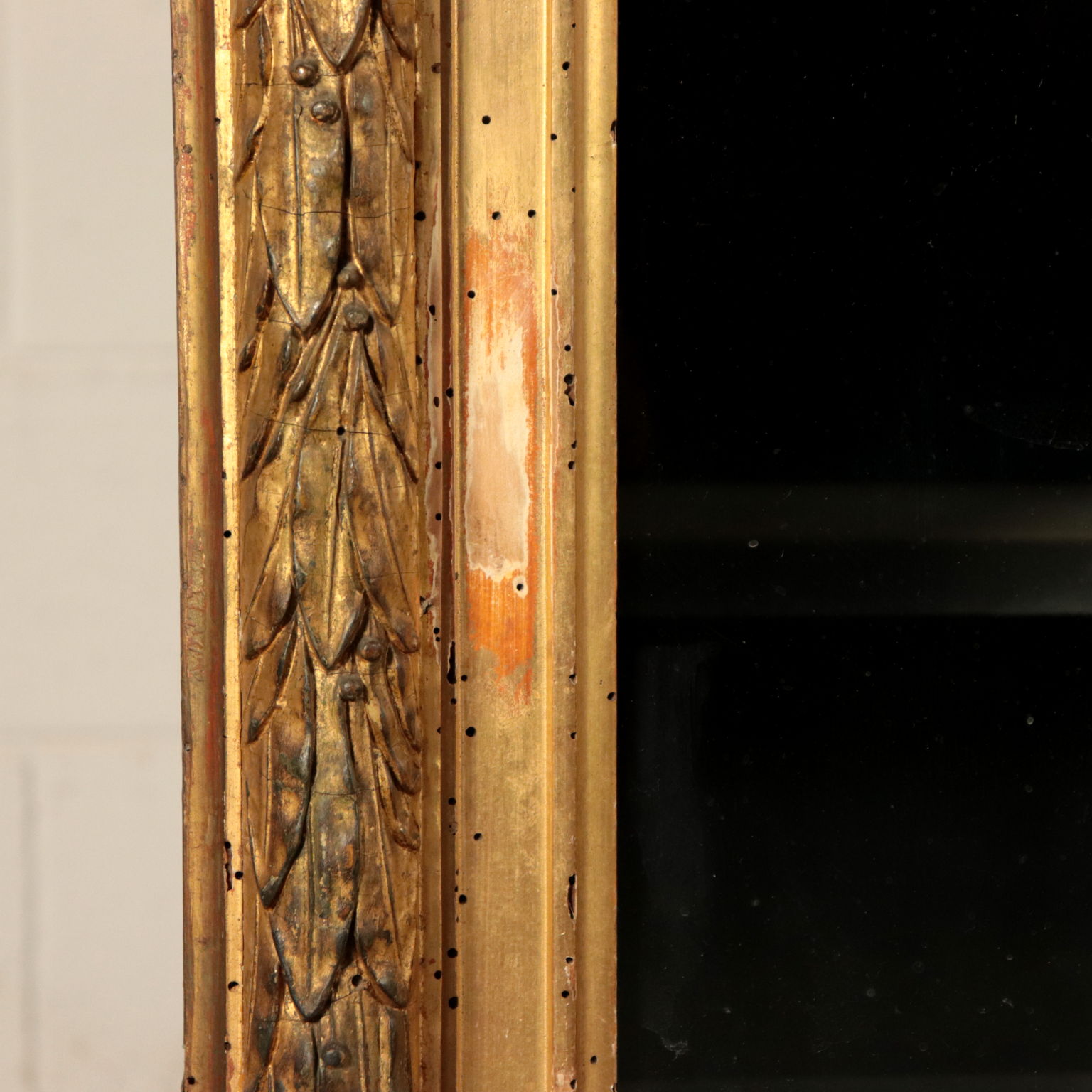 Escaparate de estilo Art Deco puertas con dos hojas de vidrio. Apoyado en cuatro patas, de las cuales el frente en la parte superior, el gabinete cuenta con un amplio marco tallado y pastillas y oro, que representa las hojas de laurel, el sabor, el Imperio, en el que existen varias deficiencias.
