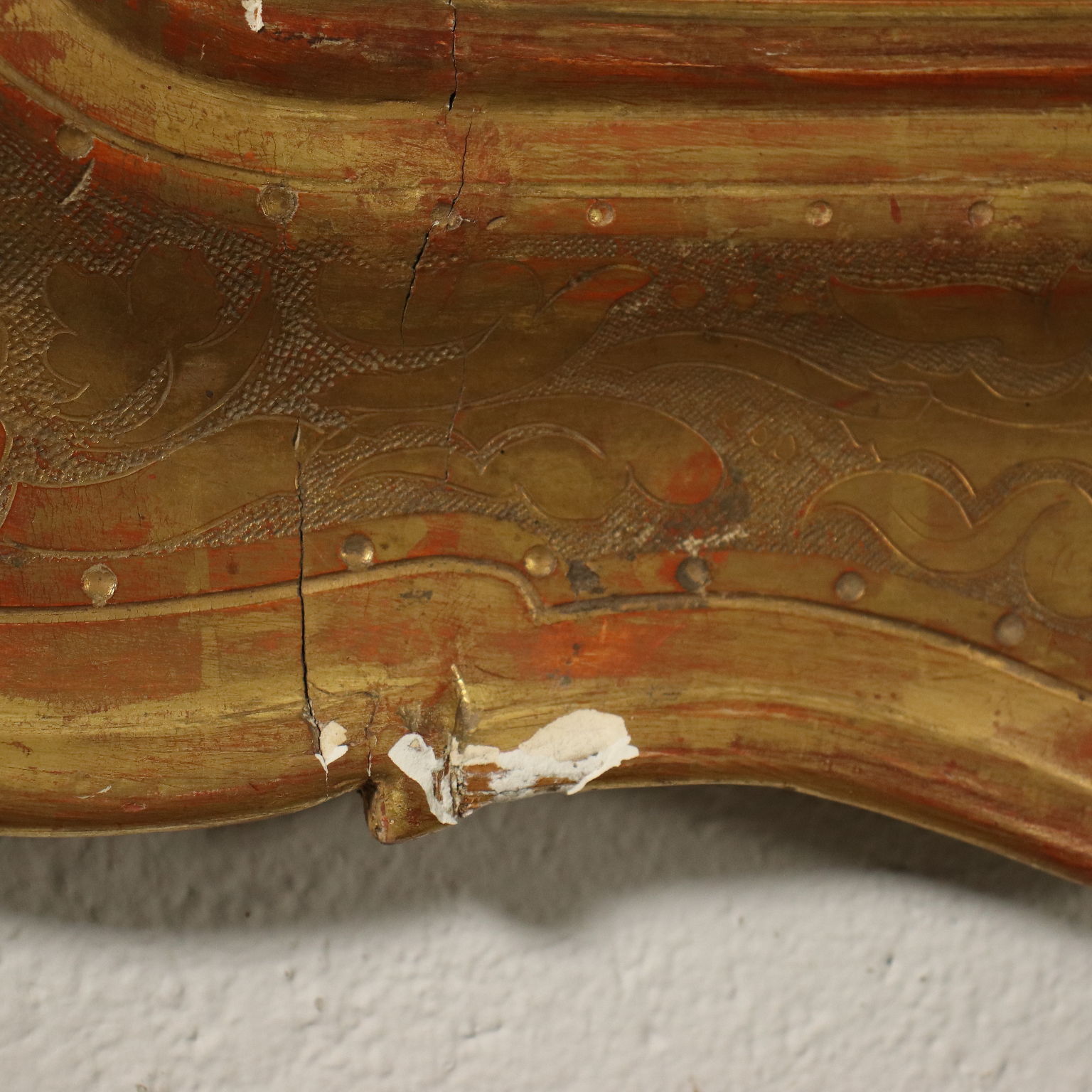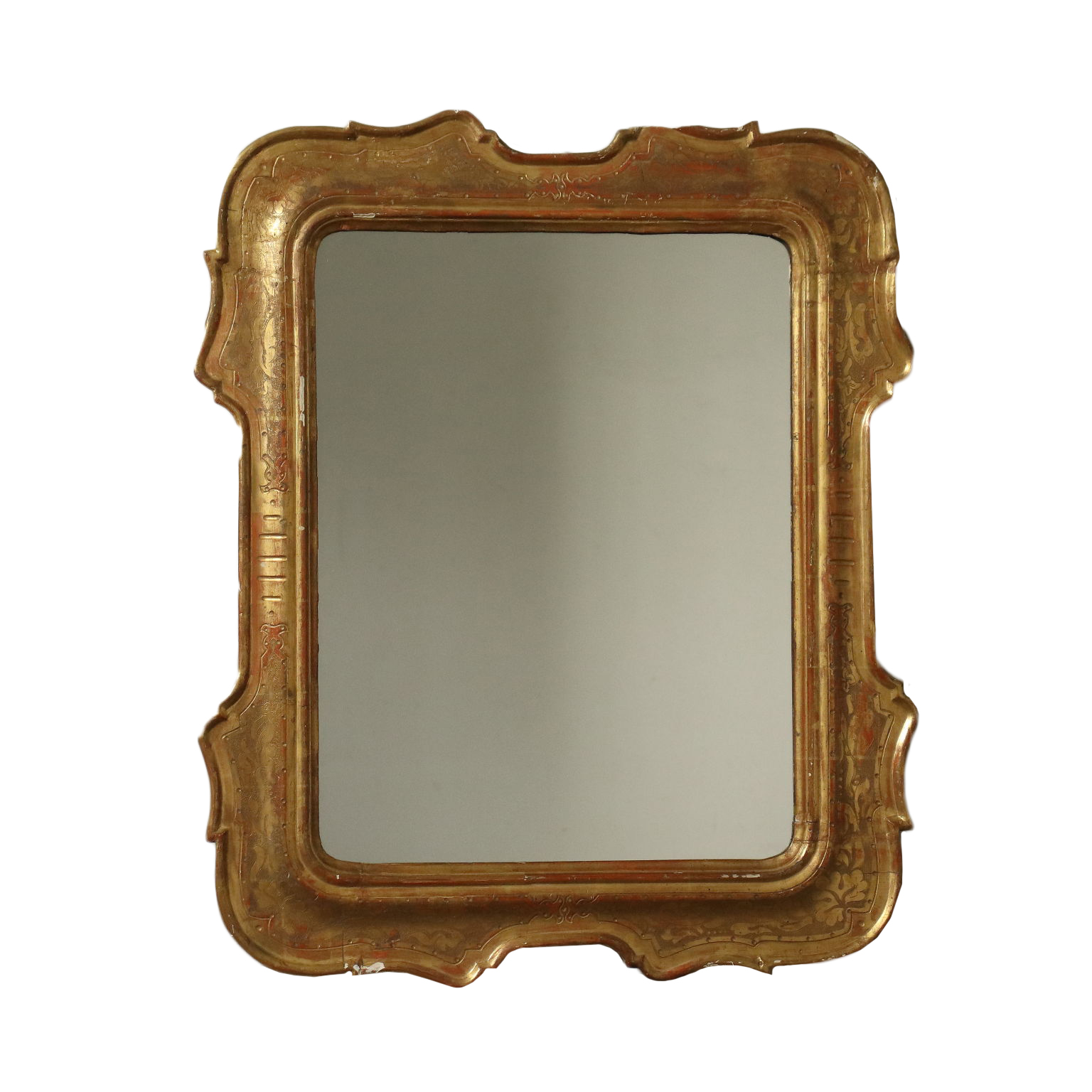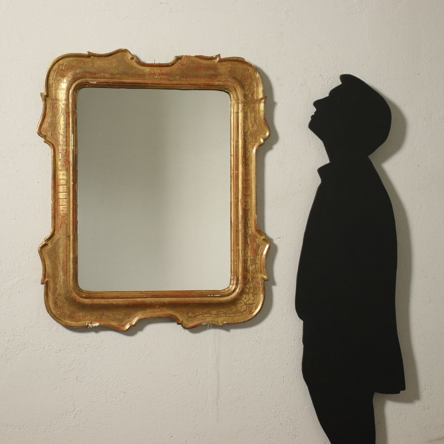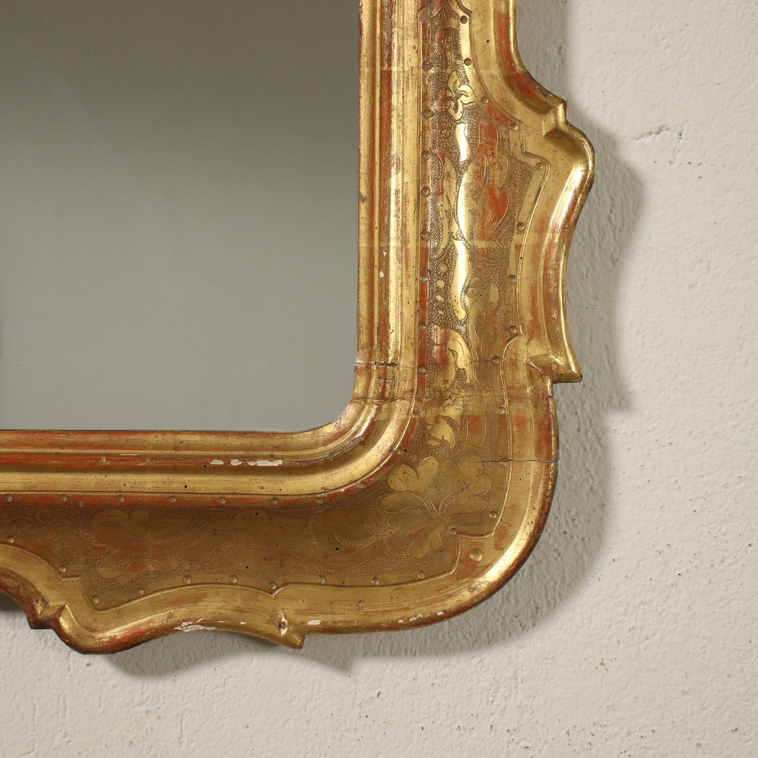 Espejo de cabaret Umbertine, el marco en forma está grabado y dorado.