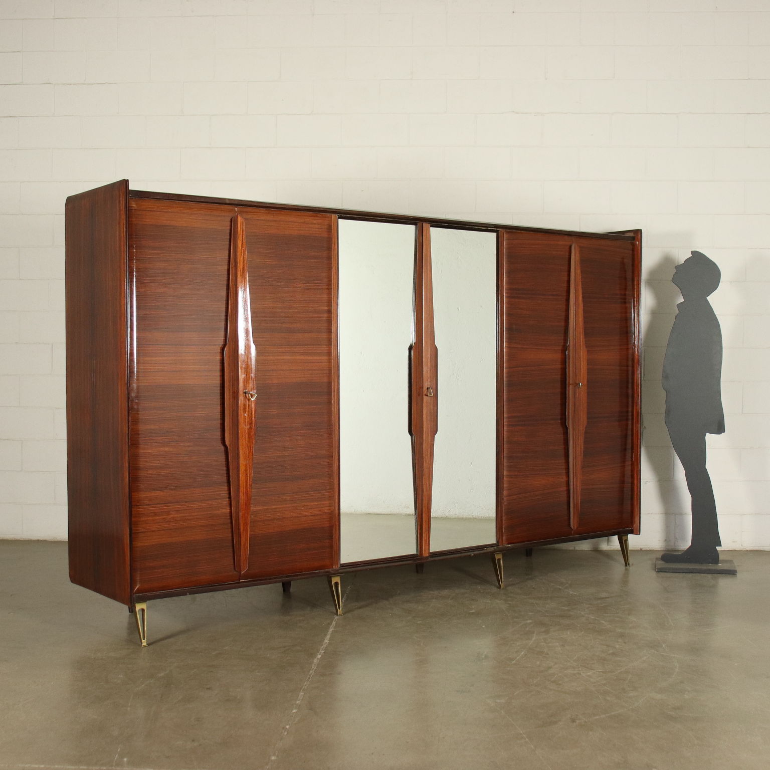Armario con puertas batientes. Chapa de palisandro y cristal espejado, patas delanteras en latón.