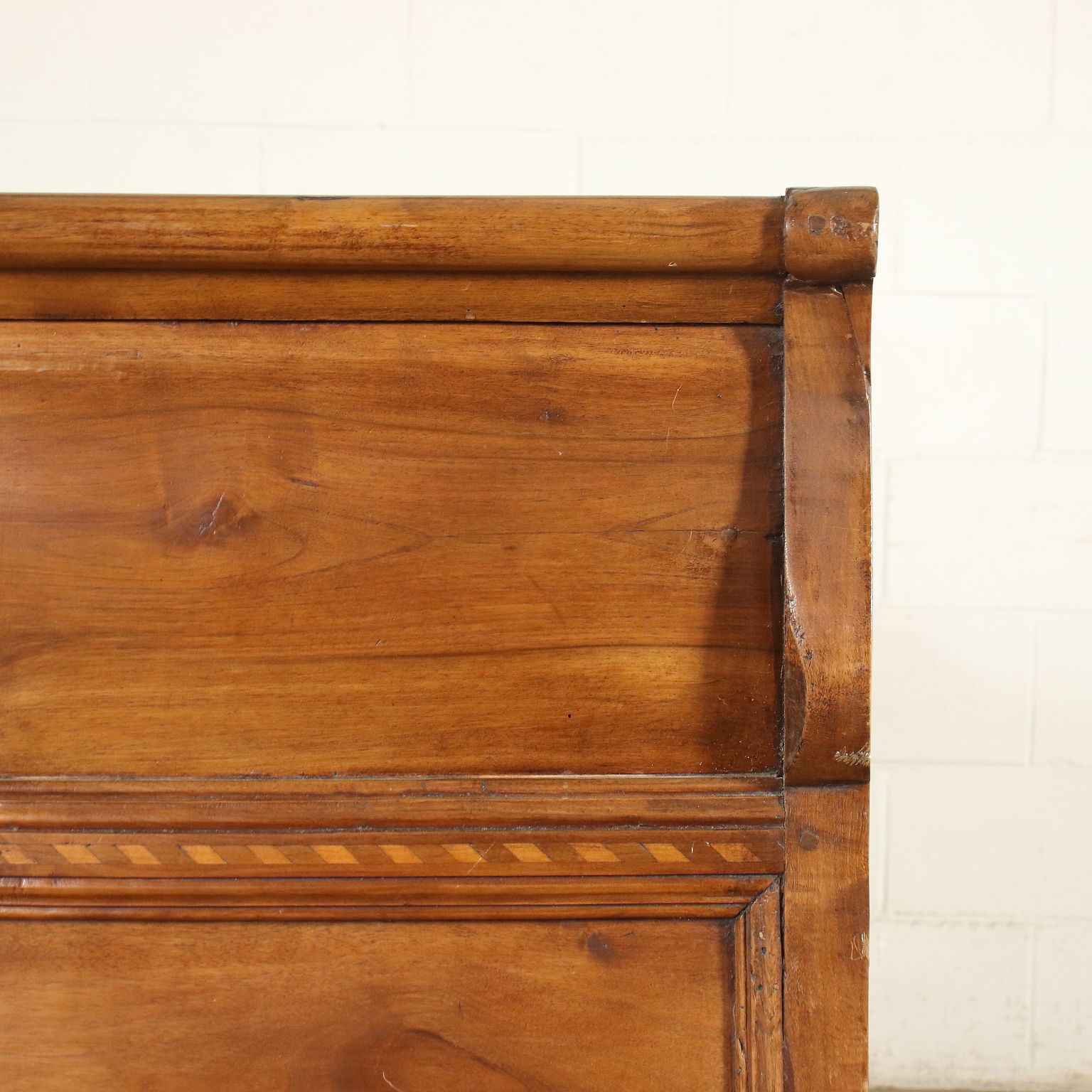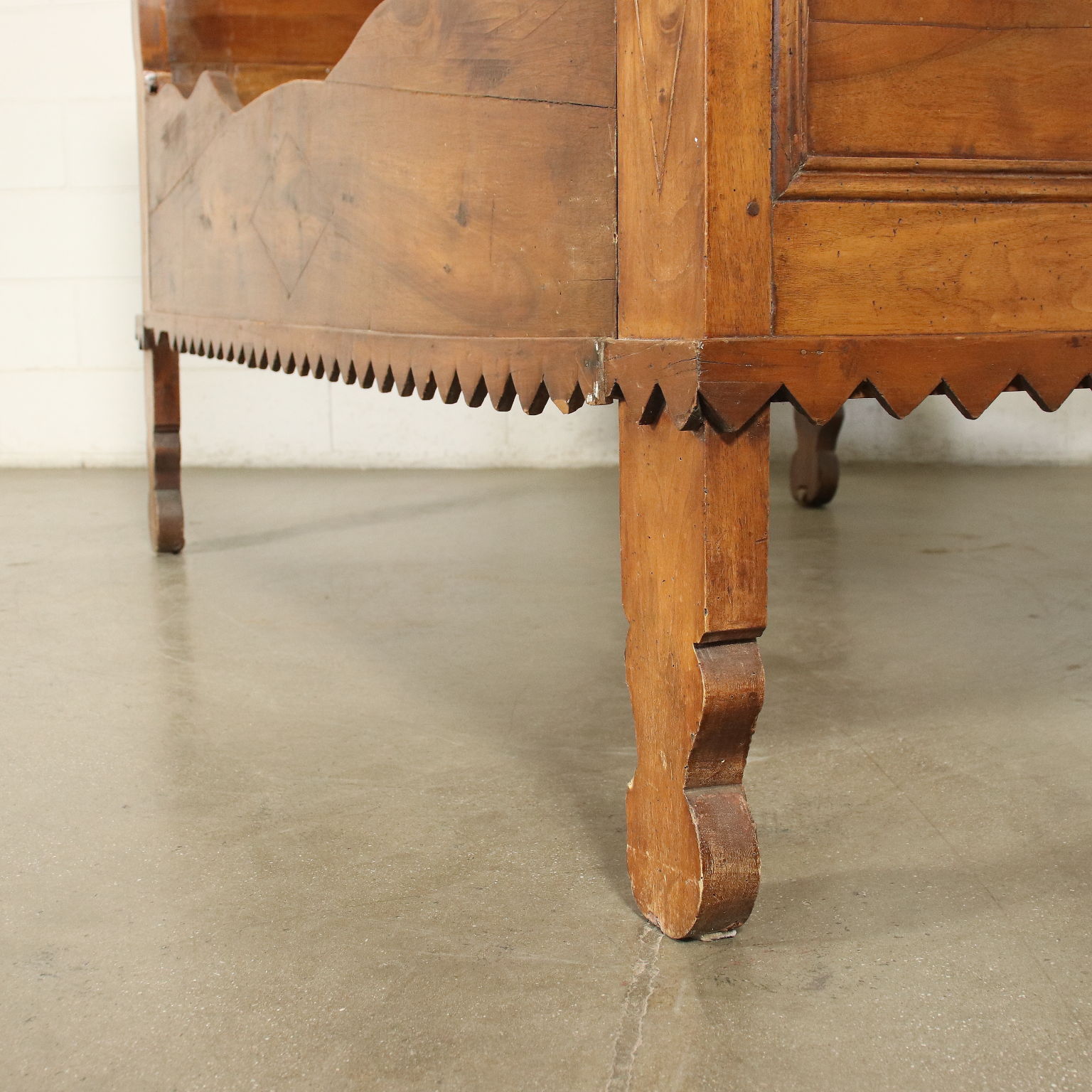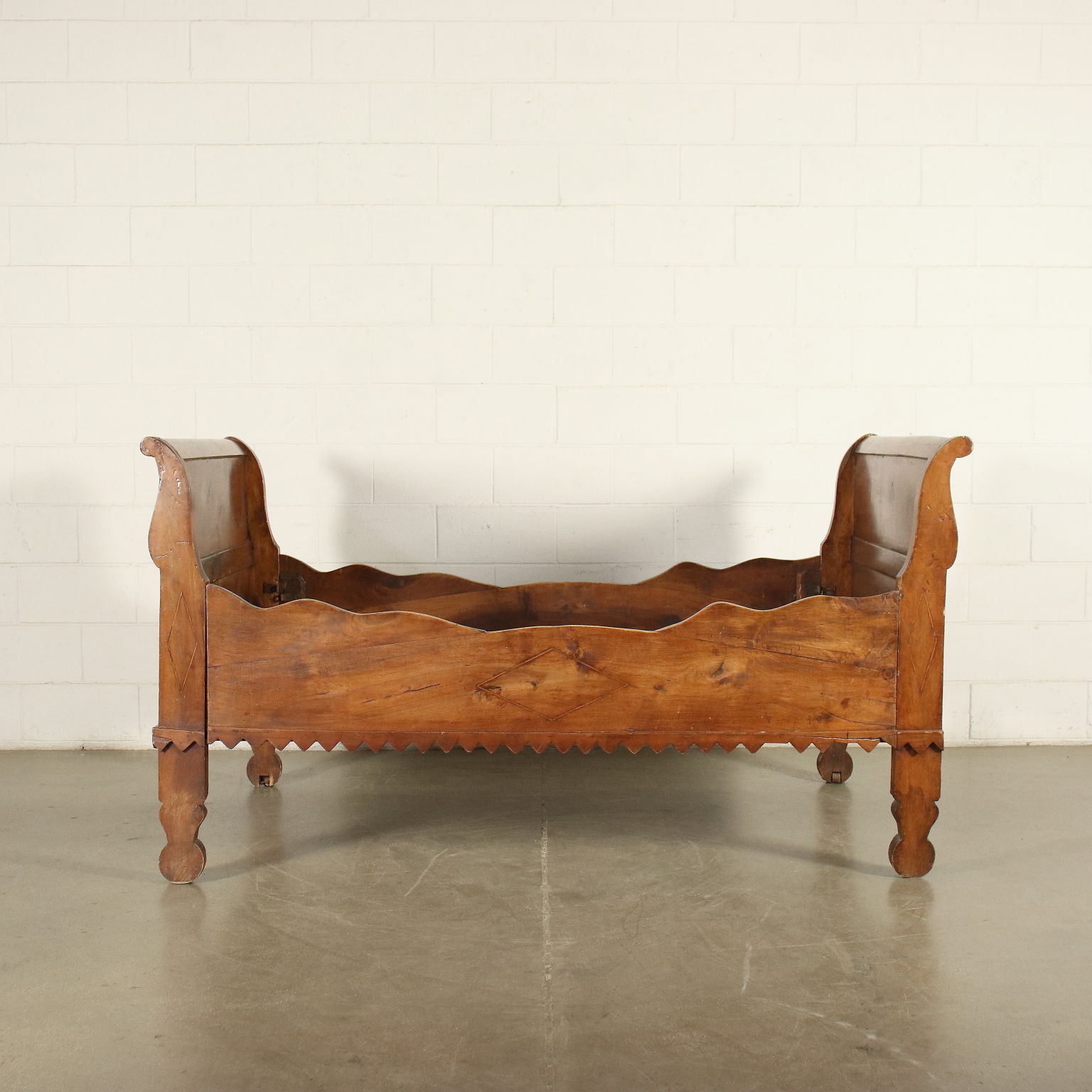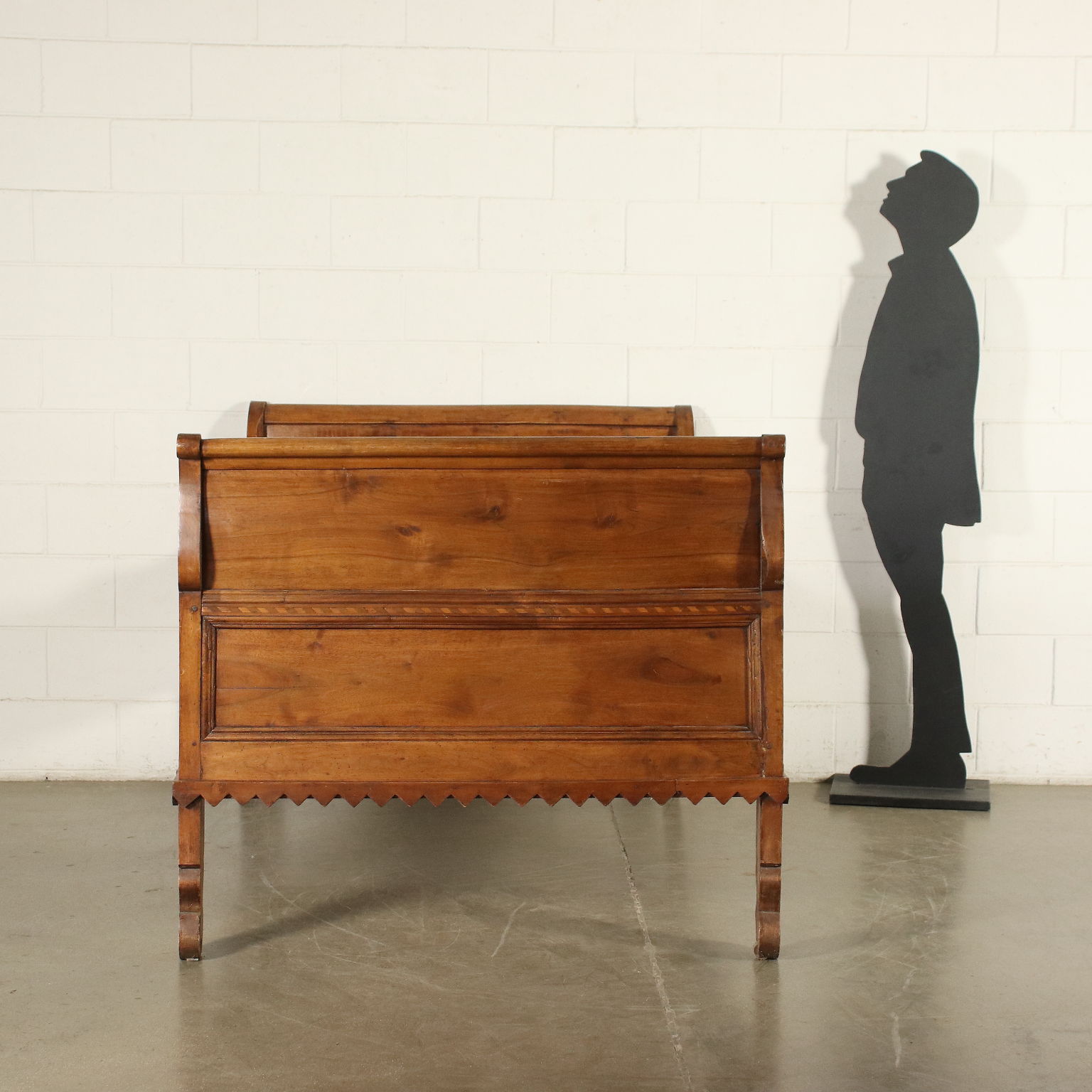 Cama de barco de restauración en nogal, la banda inferior tiene forma.