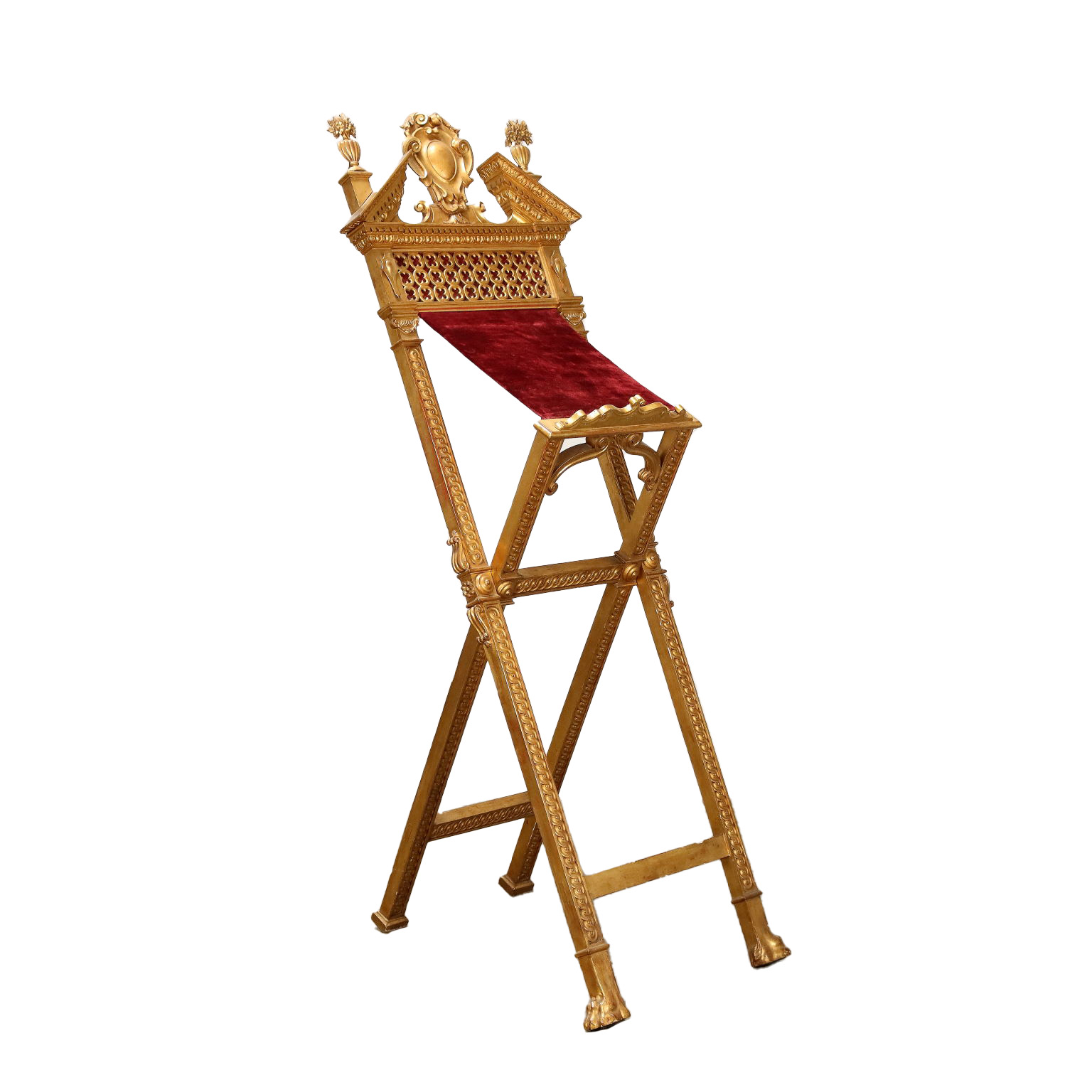 Atril abrible, tallado con motivos eclécticos y enteramente dorado.