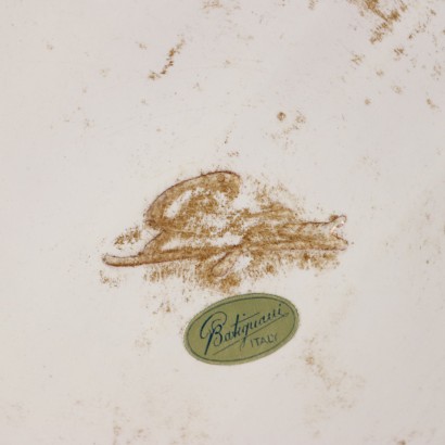 Jarrón de cerámica vidriada policromada de colores con decoración de motivos vegetales. Debajo de la base logo grabado y etiqueta adhesiva de la fabricación.