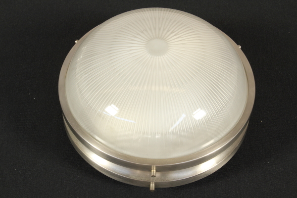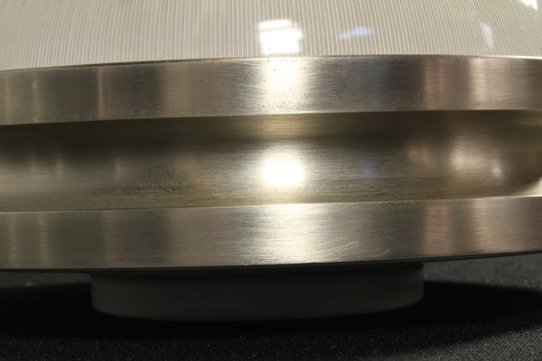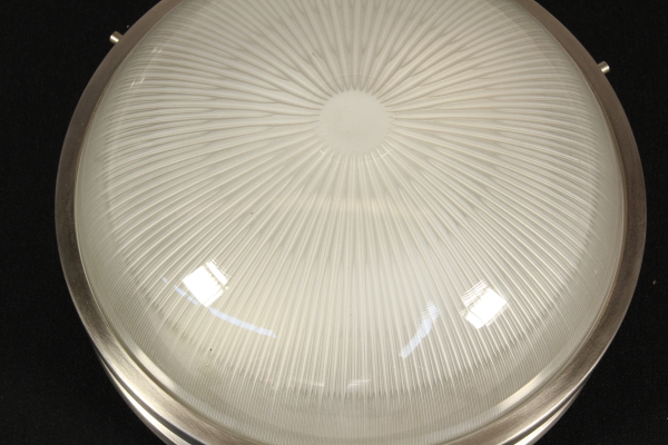 Lámpara de techo; metal cromado, cristal. Buen estado, muestra poco signos de desgaste.