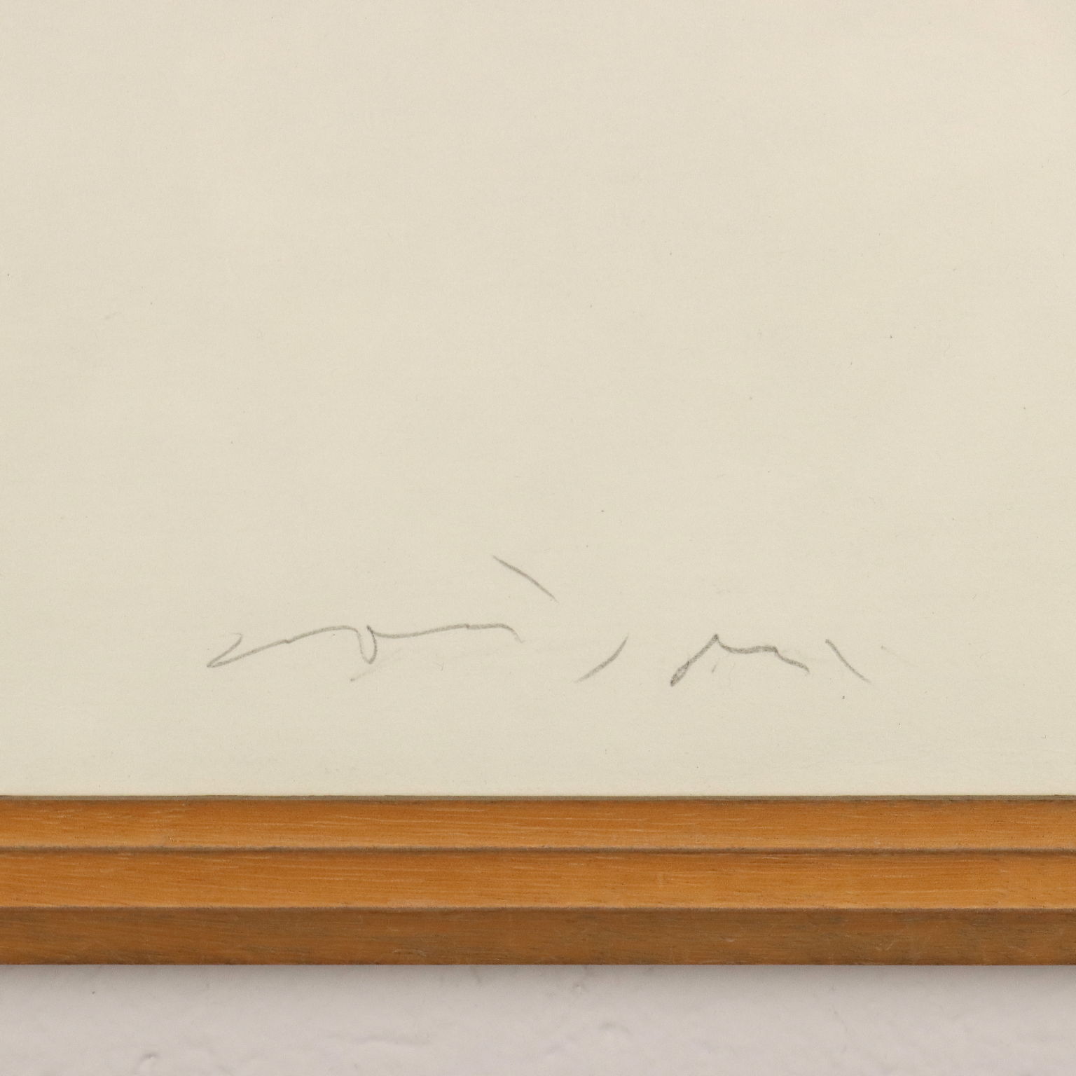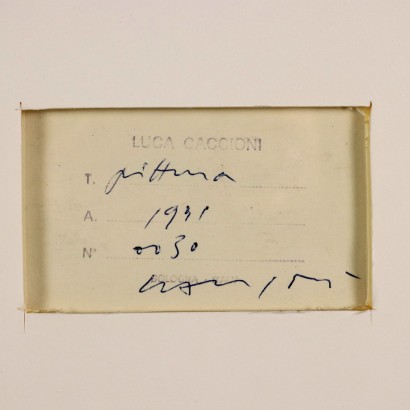 Técnica mixta sobre papel. Al dorso el sello del artista con la firma y la fecha de la obra. Caccioni, artista que nació, se formó y aún vive en Bolonia, es uno de los protagonistas de una generación que ahora ha alcanzado una maduración lingüística definitiva y ocupa un lugar destacado dentro de la escena del arte contemporáneo. Su investigación utiliza principalmente materiales inusuales como acetatos, pvc y, más recientemente, fondos escénicos de obras teatrales del siglo XIX, sobre los que interviene pintando formas extraídas de una memoria personal y de sugerencias provenientes de diferentes culturas y épocas históricas. Un elemento recurrente en la obra de Luca Caccioni es la escritura, signo autosignificante que dibuja la obra y es capaz de narrar pensamientos; trabajando por superposición, las imágenes se construyen sumando o restando el color en los distintos soportes. Obra enmarcada.