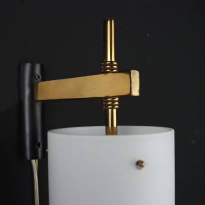 Aplique de pared en aluminio esmaltado y latón con difusores de cristal opal blanco.