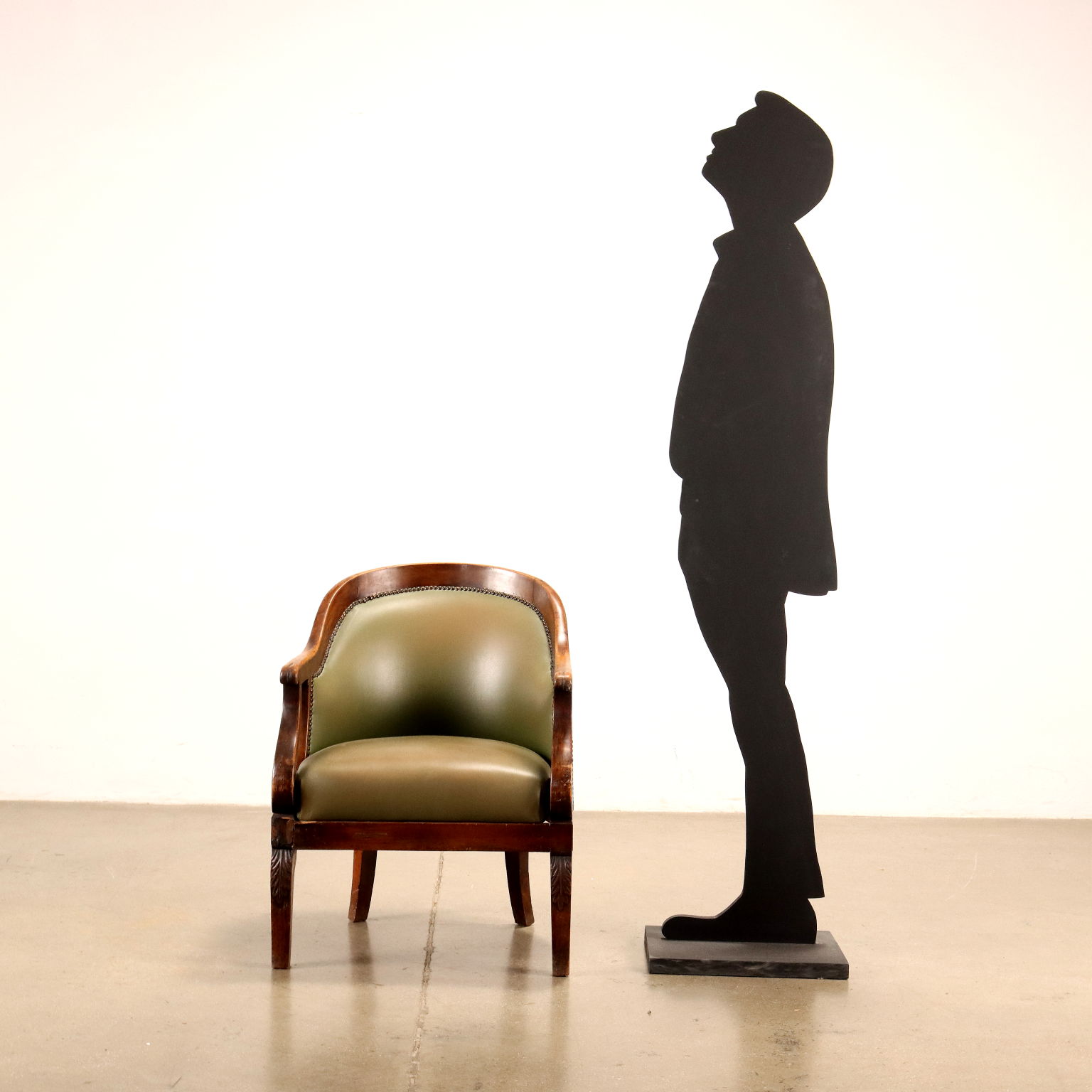 Sillón de restauración en nogal, Lombardía segundo cuarto del siglo XIX. Reposabrazos tallados en rizo, patas onduladas con elementos frondosos. Asiento y respaldo tapizados.