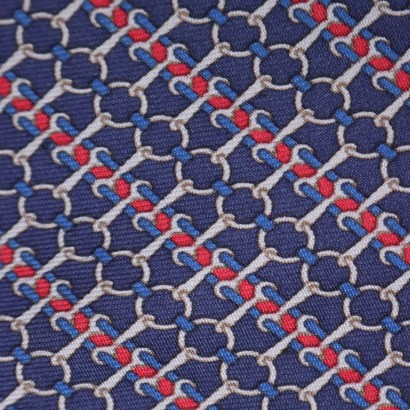Corbata firmada Hermes con estampados sobre fondo azul.