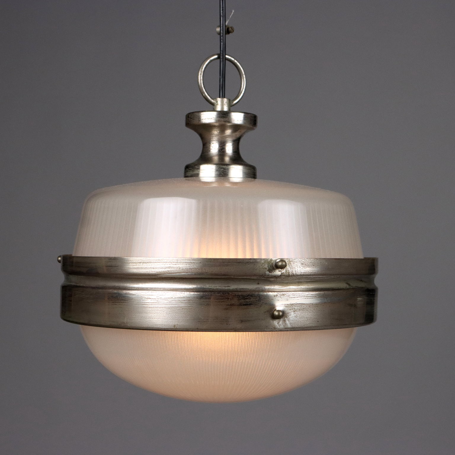Lámpara de techo estilo Sergio Mazza en aluminio niquelado y cristal.