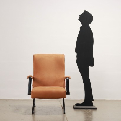 Descripción Sillón modelo 'Milly' con acolchado de espuma, revestimiento de tela y estructura de metal.