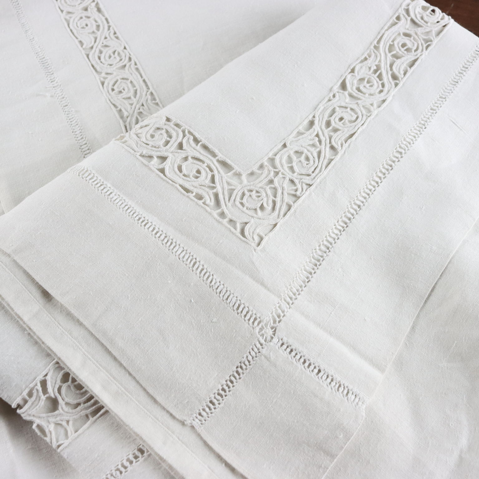 Cama doble completa con dos fundas de almohada La solapa es preciosa, ricamente trabajada en puntada satinada de burano con borde tallado con temática floral y escritura en relieve "Always Happy" Las fundas de almohada necesitan quitar manchas Color blanco Composición de lino Dimensiones sábana 280 x 236 cm Fundas de almohada 77 x 77 cm 56cm