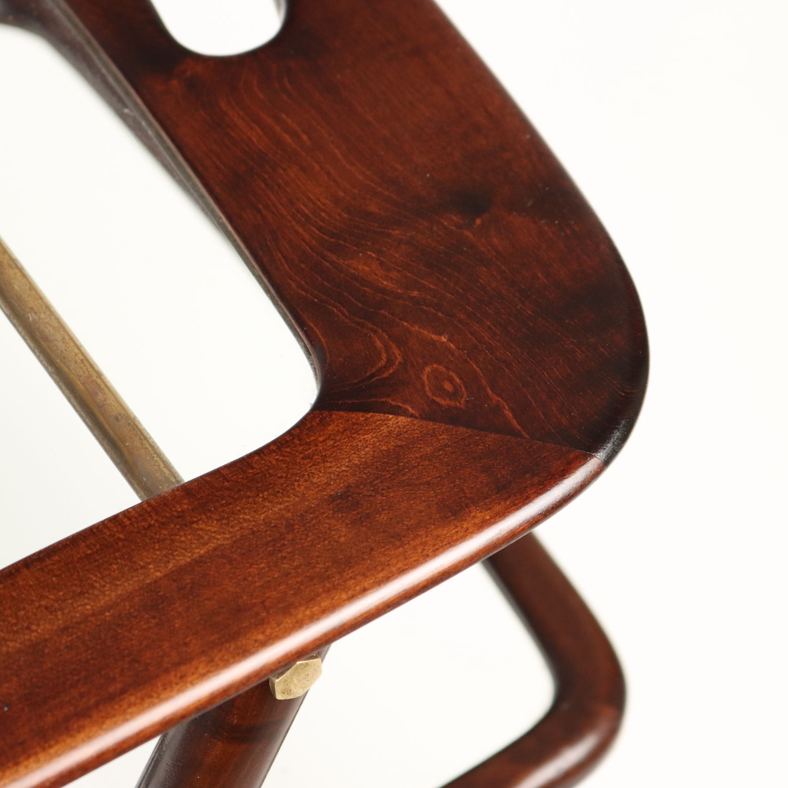 Carro de servicio con estantes extraíbles y utilizables en madera de haya teñida y latón. Un mueble elegante, cuidadosamente restaurado por nuestro laboratorio, el producto vuelve a estar como nuevo, manteniendo el encanto de una pieza Vintage con sabor a tiempos pasados, y a dar nueva vida a las cosas.