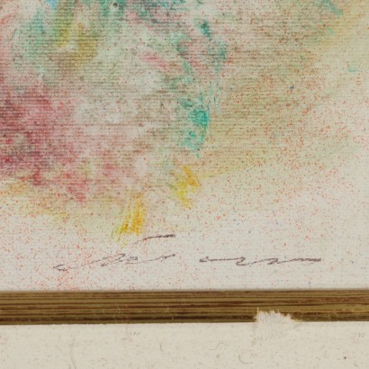 Pintura al óleo sobre lienzo. Firmado abajo a la derecha. Ernesto Treccani, fundador del Instituto Treccani, es recordado por su ininterrumpido compromiso humano y artístico, caracterizado por una acción incansable de difusión de la cultura y el debate artístico, por una adhesión concreta a las situaciones de la vida y por un profundo amor por los hombres y las cosas. Toda la pintura y el arte de Treccani tienen como objetivo romper la separación entre él y el mundo, entre sentimiento y forma, entre la idea y la expresión imaginativa. Han dicho de su arte que es "una búsqueda del alma de las cosas más que de su fenomenal consistencia". El que se presenta es uno de los múltiples rostros pintados por Ernesto Treccani, una población de rostros pintados a lo largo de más de cinco años como una progresiva adición y elaboración de núcleos de imágenes, de vez en cuando sugeridas por reuniones, lugares, ocasiones públicas y privadas. , experimenta políticas y trabajo; todos los rostros son de personas conocidas por el artista: amigos, familiares, compañeros del Norte y del Sur, representados en un intento de identificarlos y caracterizarlos psicológicamente a través del color. Trabajar en marco.