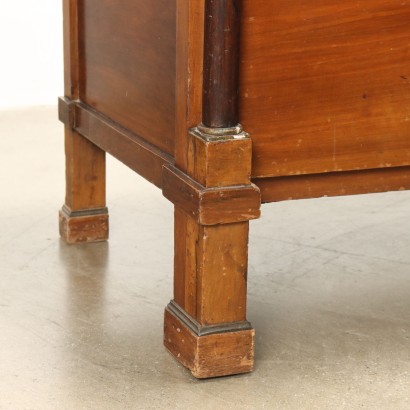 Mueble ocultador con puerta abatible de nogal con cajones y secretos, frente con 3 cajones de los cuales el más pequeño en la banda bajo encimera y montantes decorados con columnas ebonizadas, pies de zócalo. Italia, principios del siglo XIX.