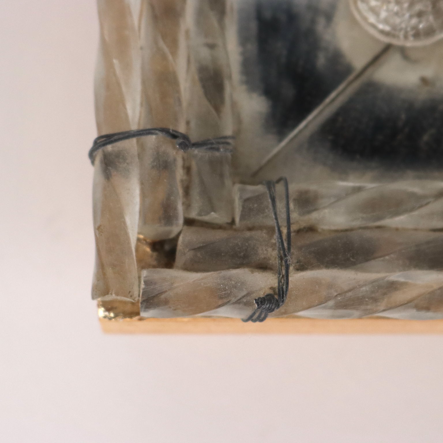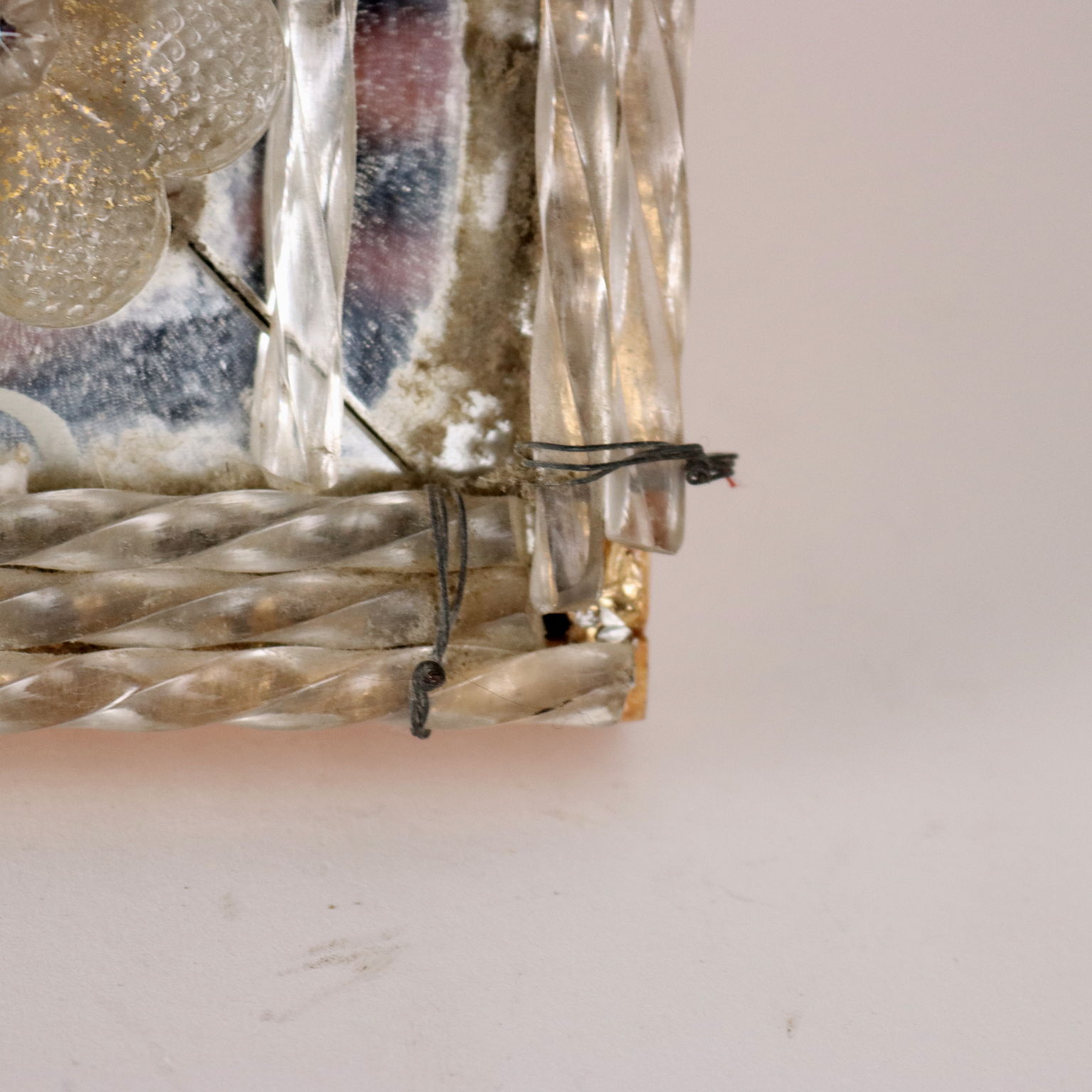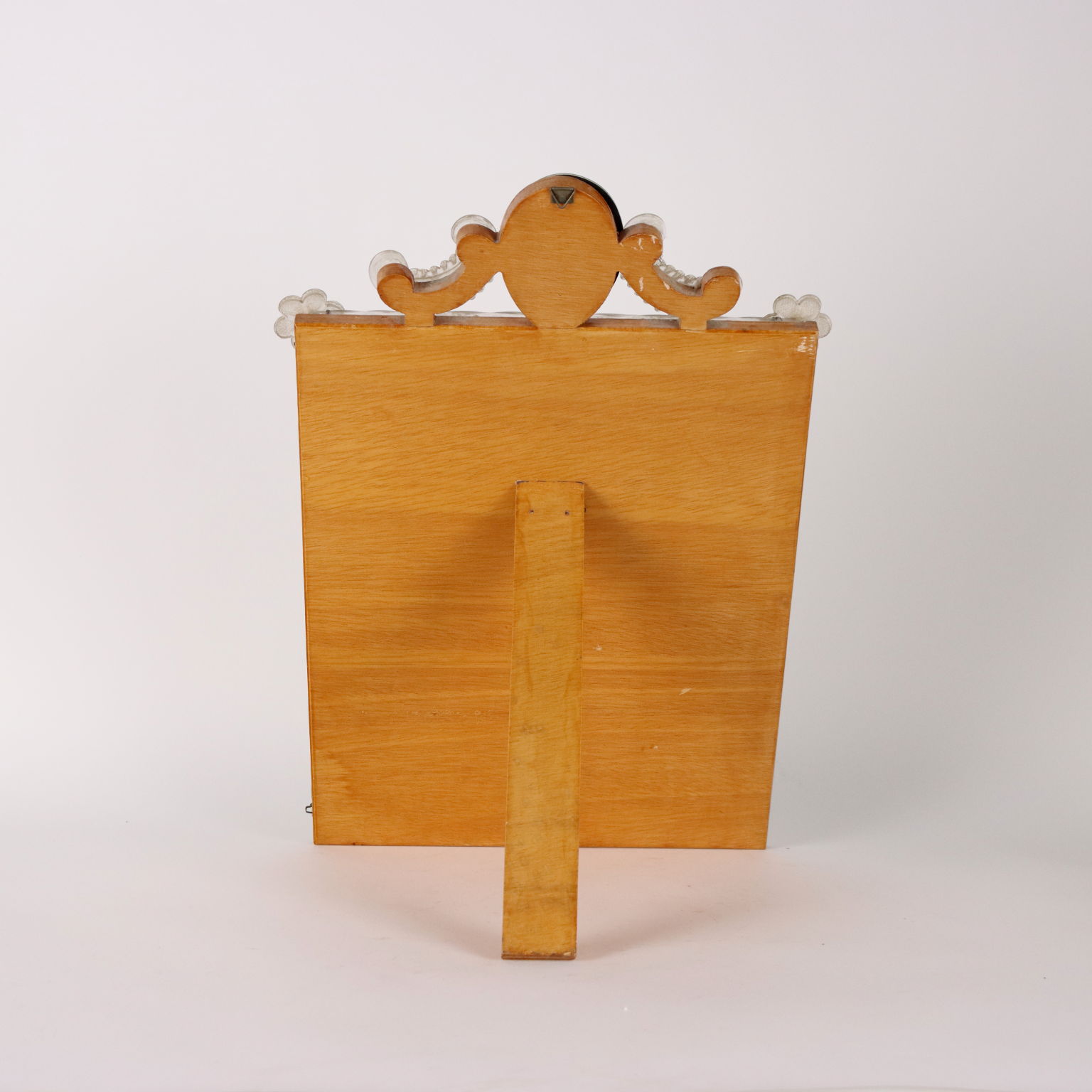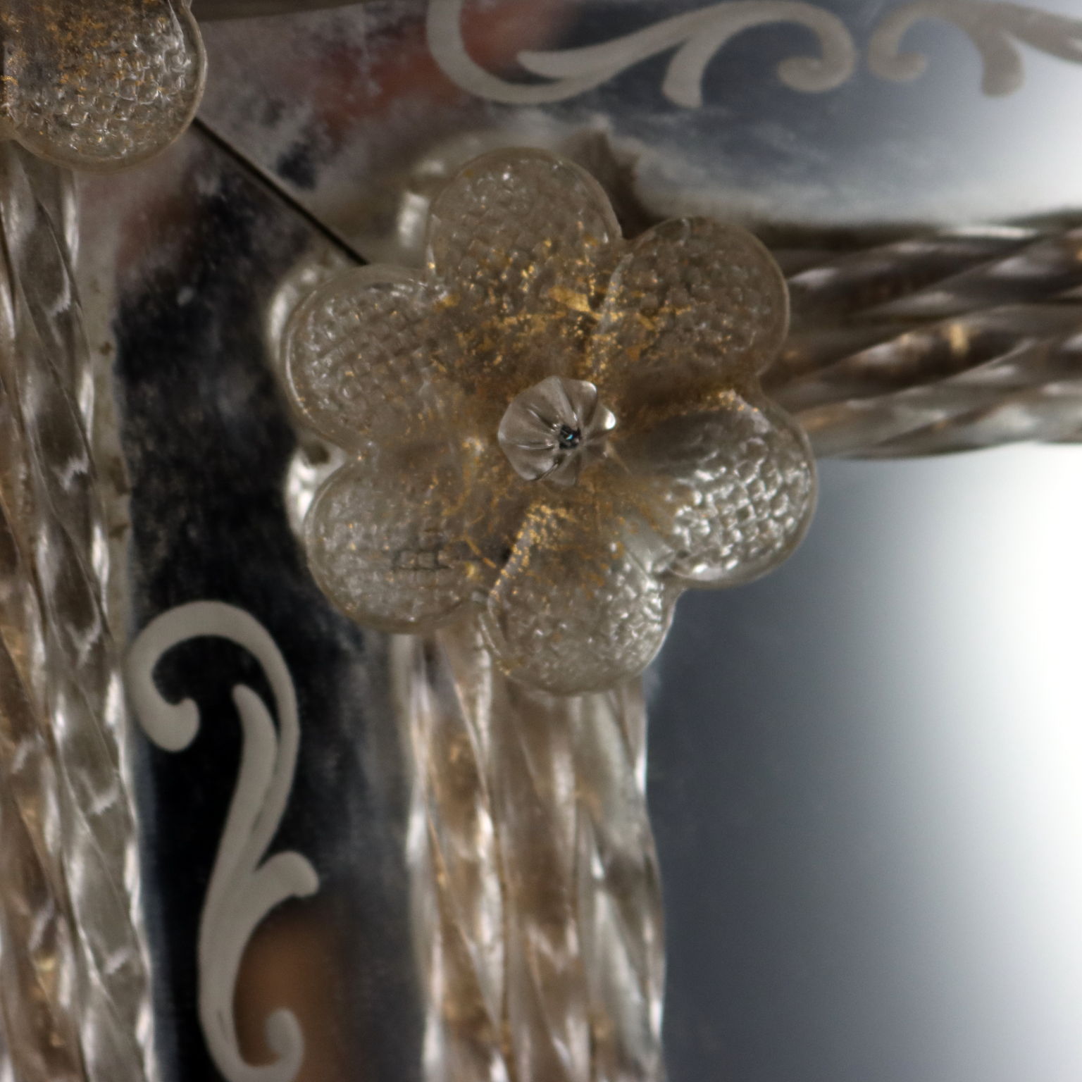 Espejo con cimacio y marcos en vidrio grabado formando motivos florales y rizos combinados con vidrio tallado y esculpido. Deficiencias. Italia del siglo XX