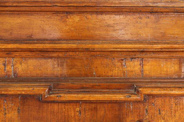 Antigua puerta con panel central formado. Utilizado como decoración.