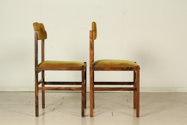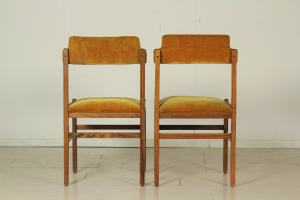 Par de sillas; madera de teca, acolchado, de espuma recubierta con tejido. Regular estado de conservación, con algunos signos de desgaste.