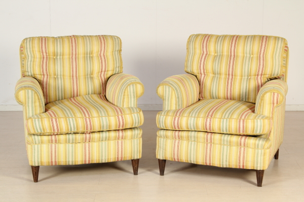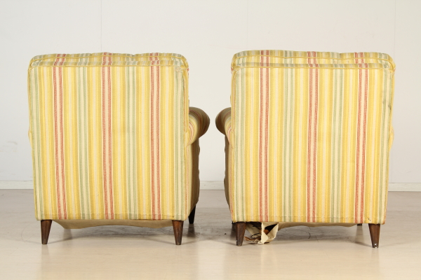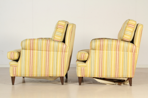 Par de sillones; Primavera y relleno de espuma, cubiertos con tela. Regular estado de conservación, con algunos signos de desgaste.