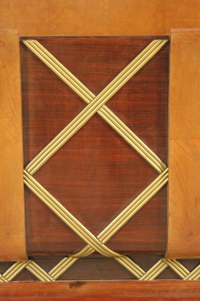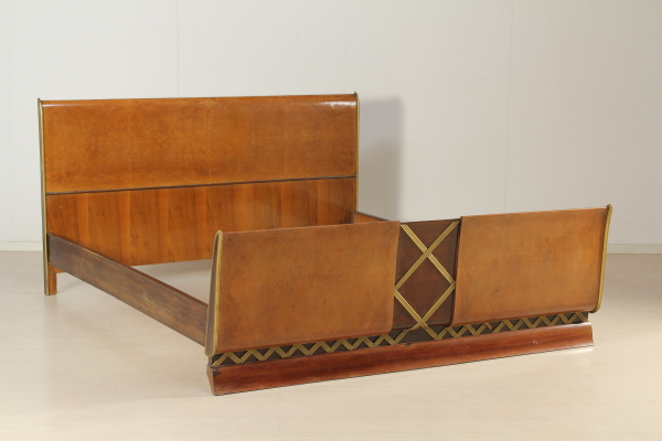 Cama doble; palo de rosa y nuez chapearon madera. Feria de condición, tiene algunos signos de desgaste.