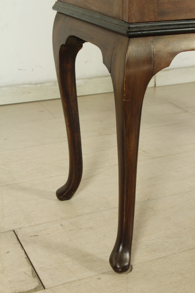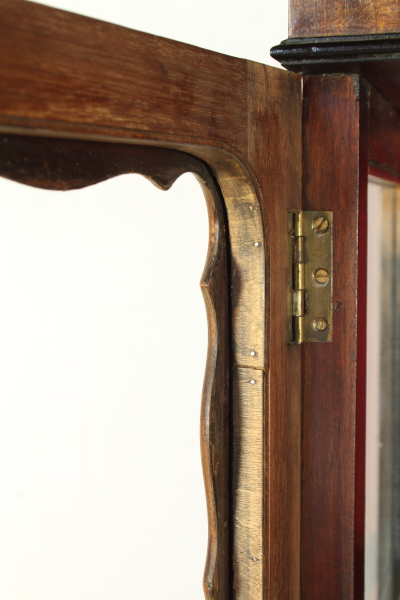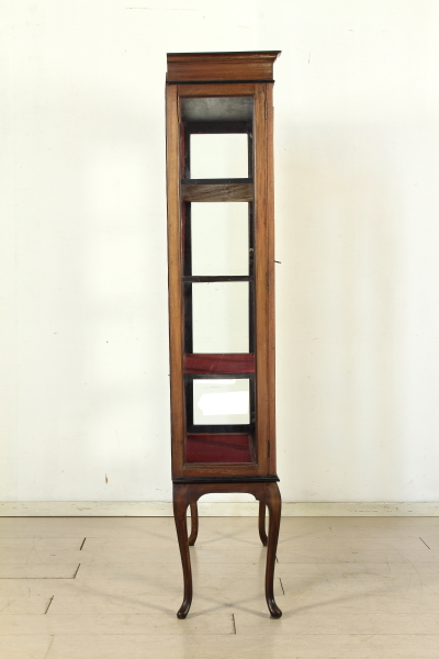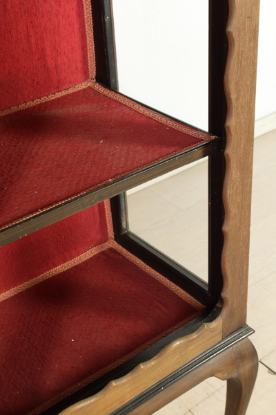 Pierna recta mueve de escaparate presenta dos puertas molduradas sin cristal. En forma de moldeado, lados de cristal. Tres estantes internos. El escaparate está roto.