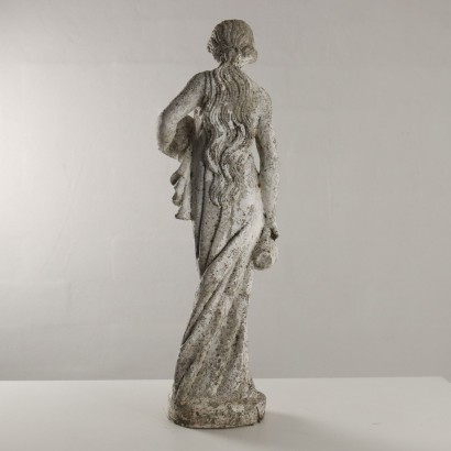 Estatua de jardín en arenilla que representa una figura femenina con ánforas, Italia, principios del siglo XX. Vestida a la antigua usanza.