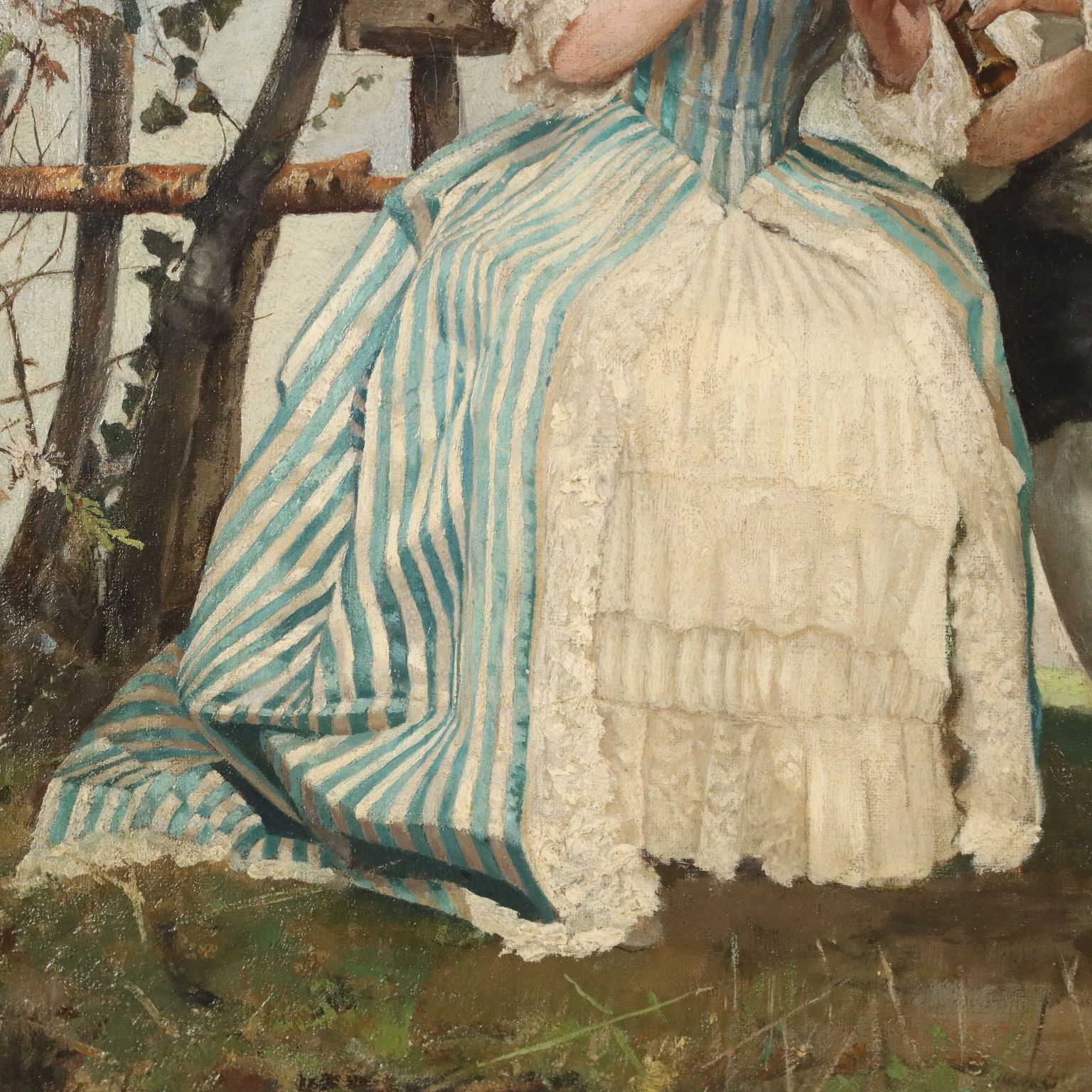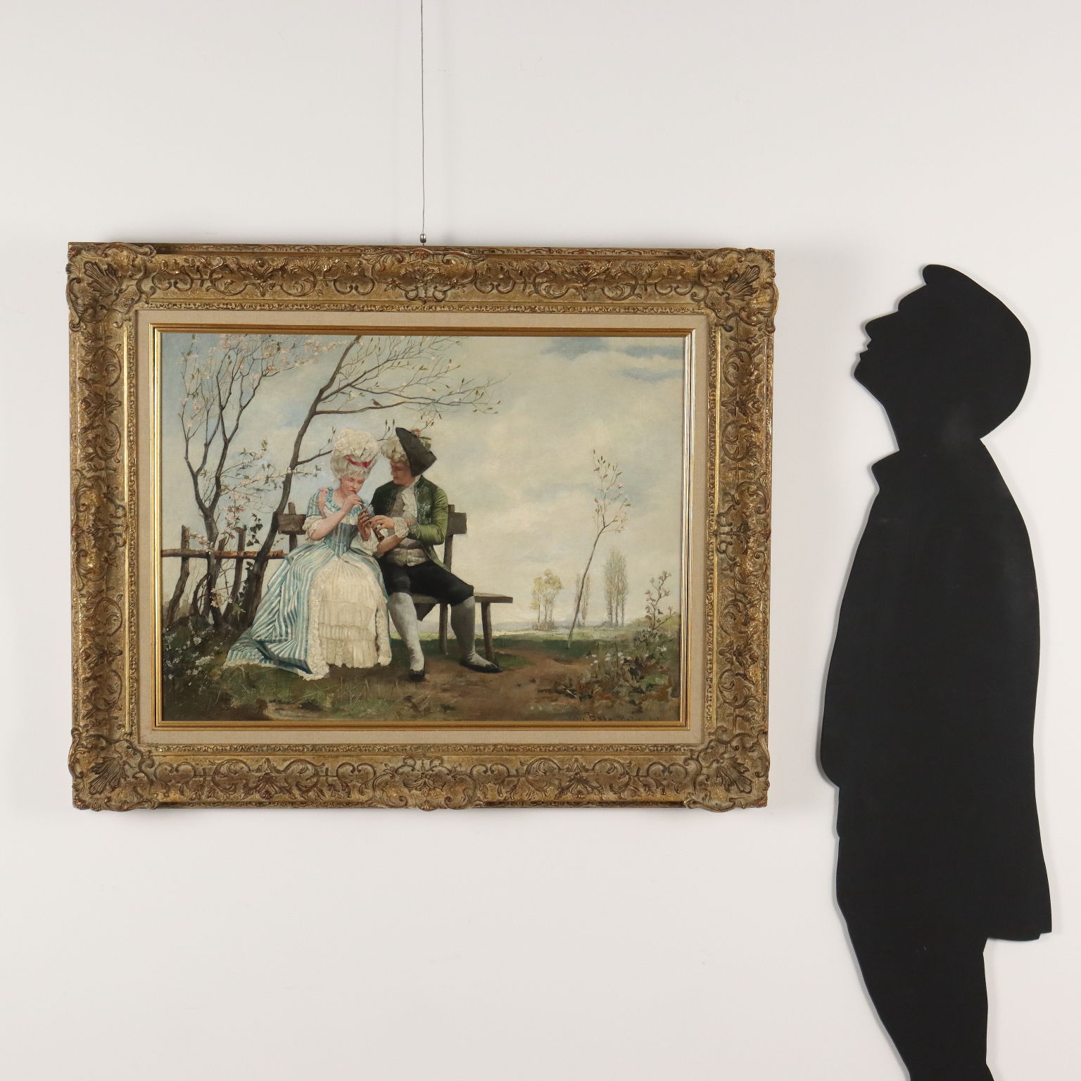 Pintura Antigua de L. Von Babo Óleo Sobre Lienzo Escena Galante 1887 - Escena de Cortejo 1887