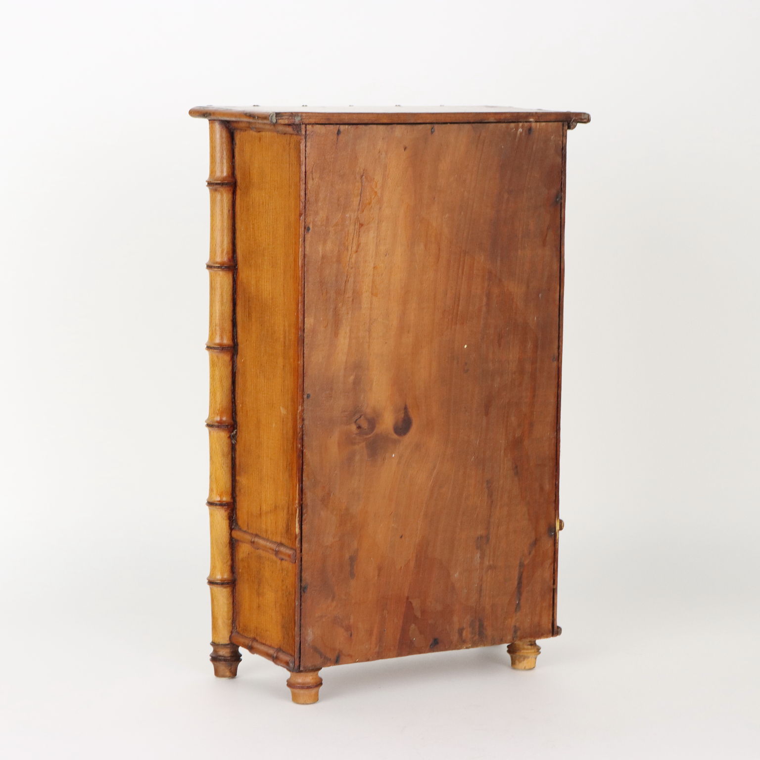 Mueble modelo en madera de ciprés y haya tallada con imitación de bambú. Puerta con espejo de mercurio de época anterior.