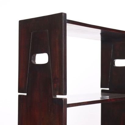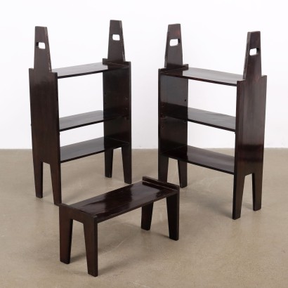 Librería modular con elementos apilables. Chapa de madera teñida de ébano.