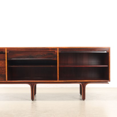 Aparador de los años 60 con chapa de madera exótica y puertas enrollables de la serie '503'. Diseño de Gianfranco Frattini para una producción de Bernini de los años 60. Muebles completamente restaurados.