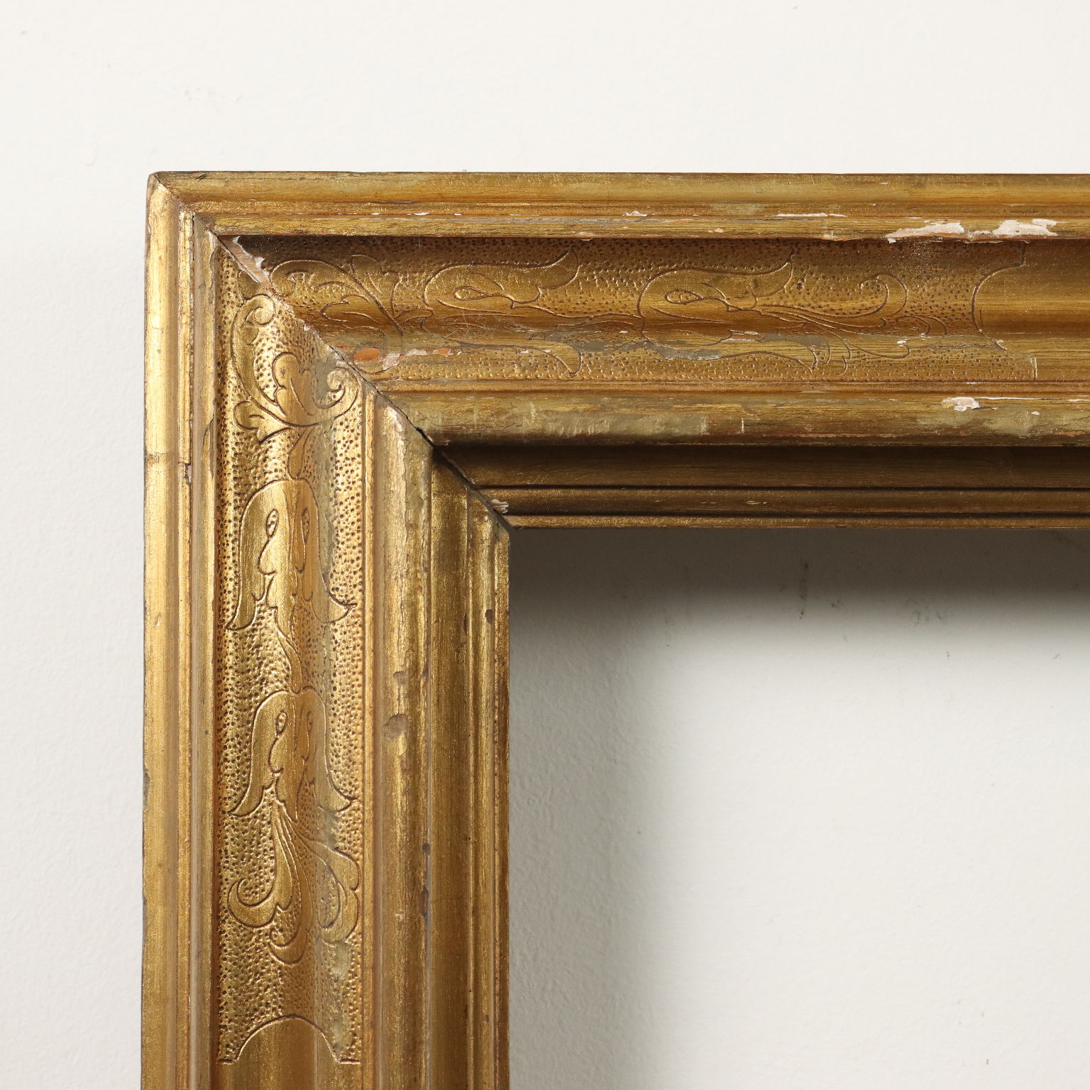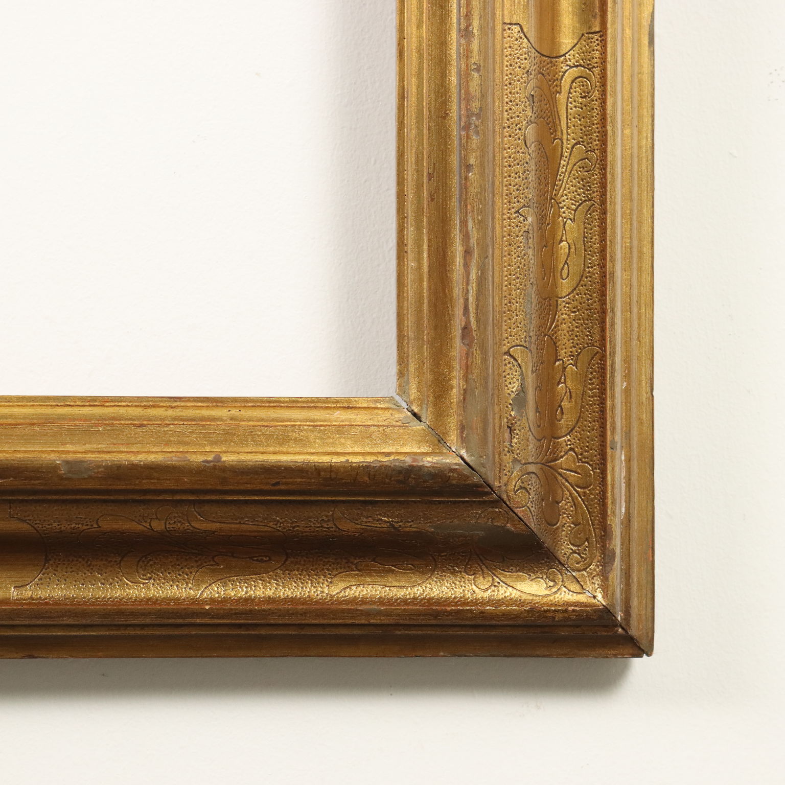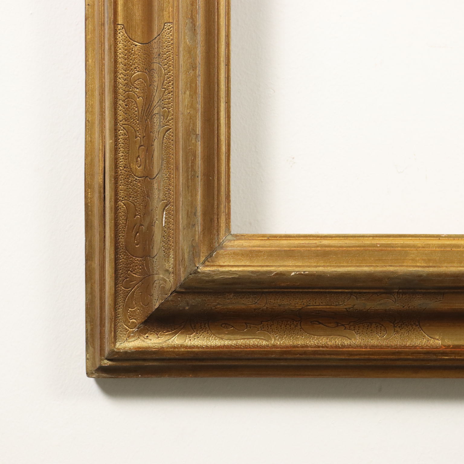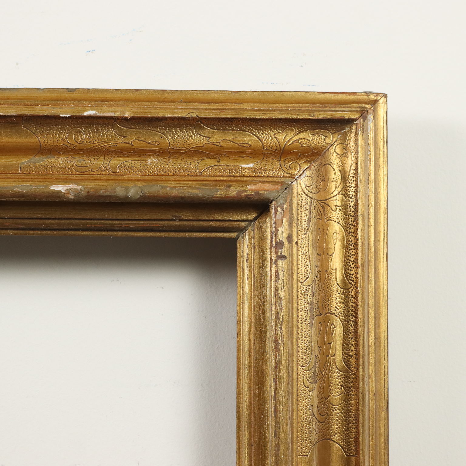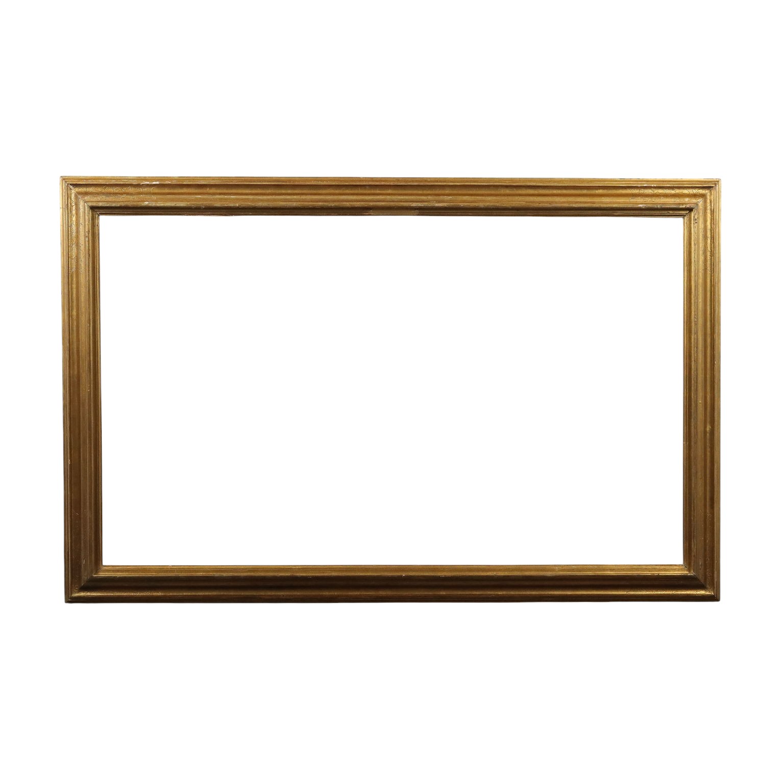 Gran marco moldeado según cánones antiguos pero realizado a mediados del siglo XX, dorado en oro “mate” en toda su superficie.
