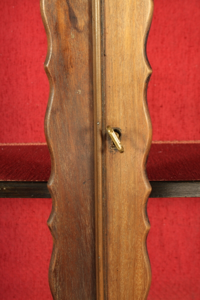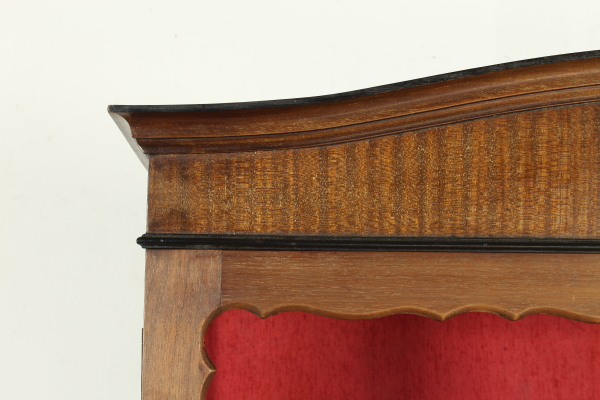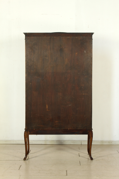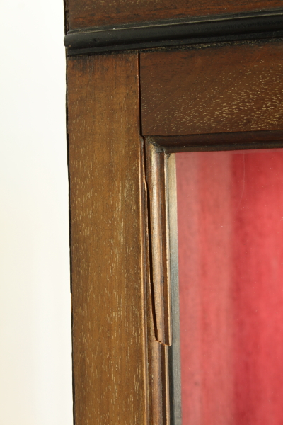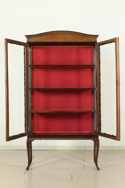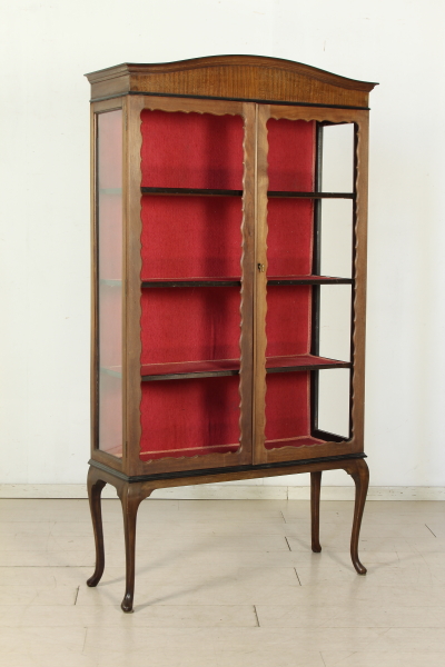 Pierna recta mueve de escaparate presenta dos puertas molduradas sin cristal. En forma de moldeado, lados de cristal. Tres estantes internos. El escaparate está roto.