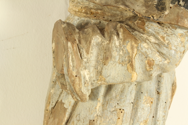 Escultura de madera policromada grande que representan a querubines. Restauración que ha mantenido los colores originales.