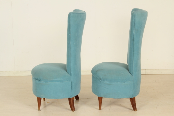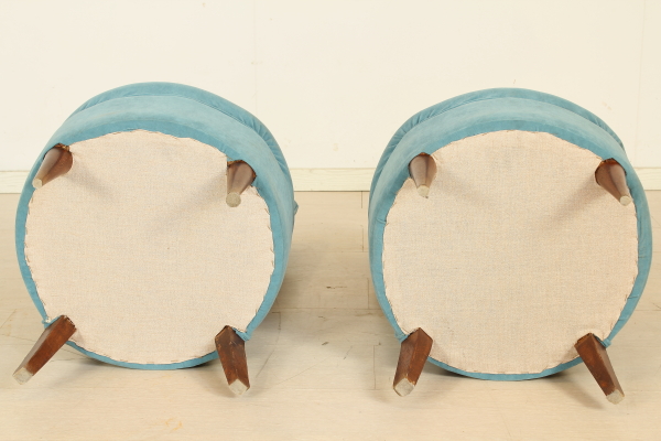 sillas de 40 años, par de sillones; almohadillas de espuma, cubiertos con tela. Buena condición, Mostrar pequeños signos de desgaste.