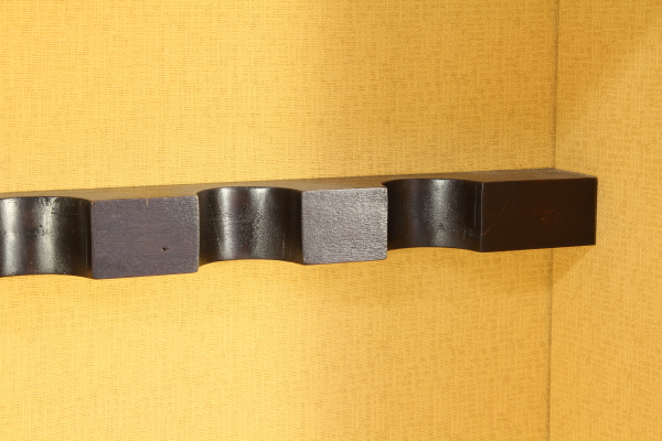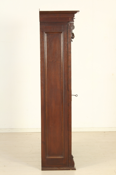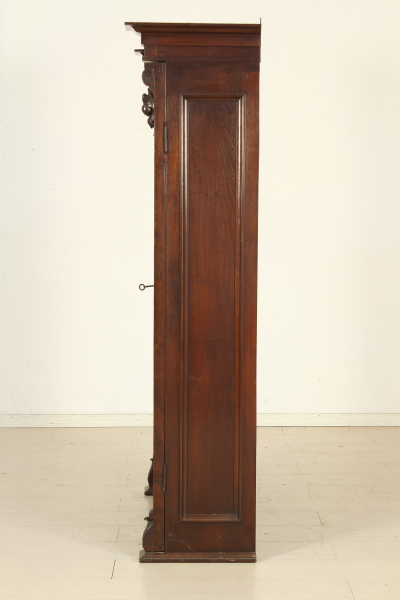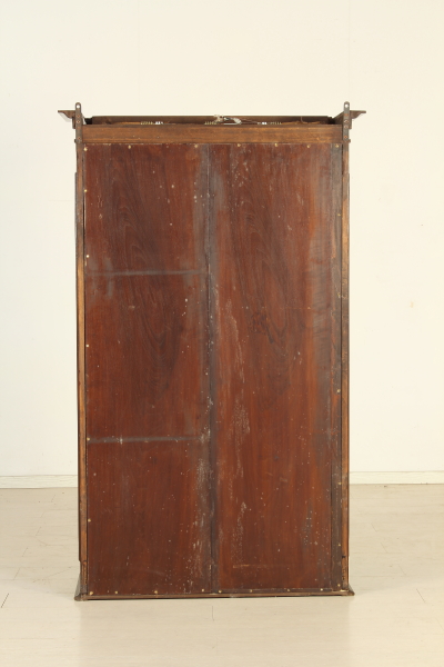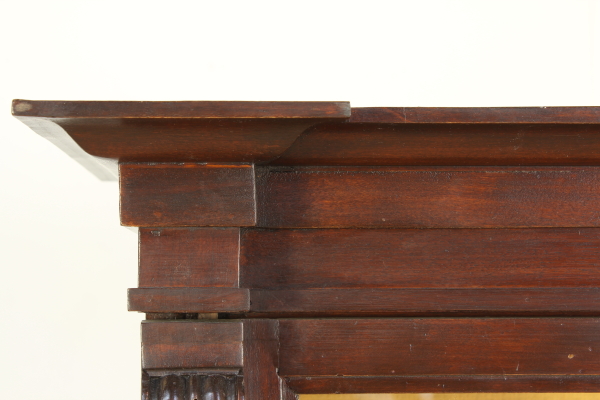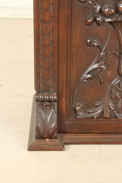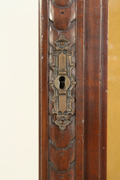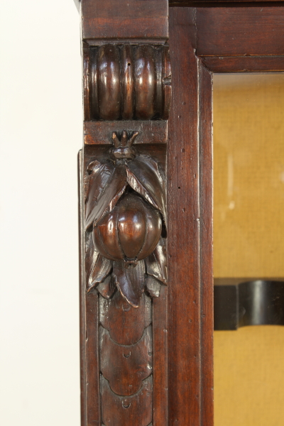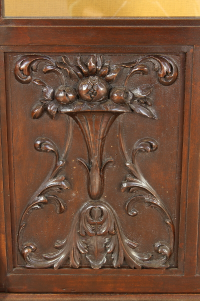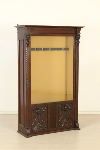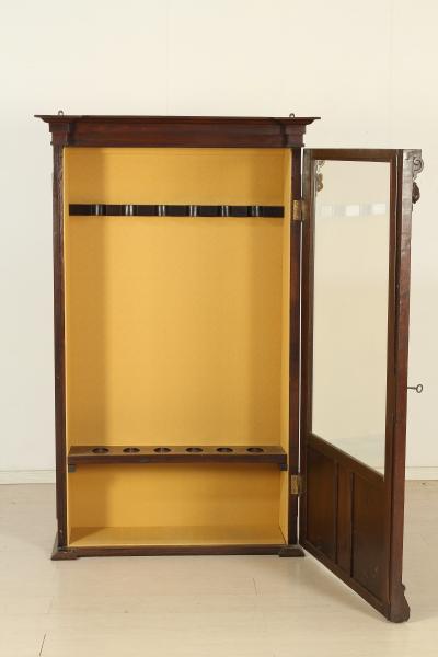 De estilo neorrenacentista, vitrina con puerta de cristal características incluyendo dos montantes. Paneles y columnas talladas. Objetivo rifles dentro.