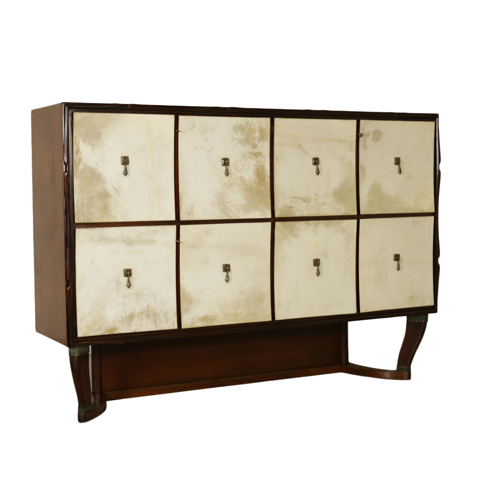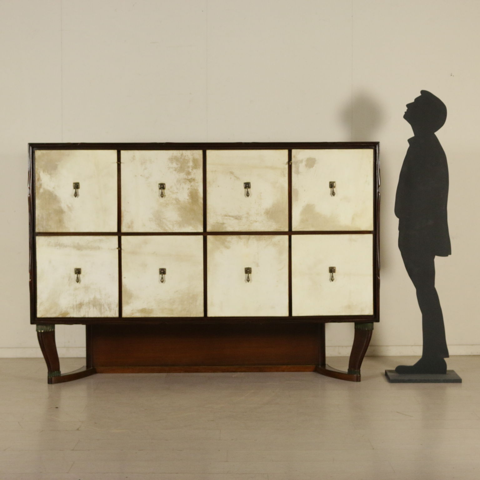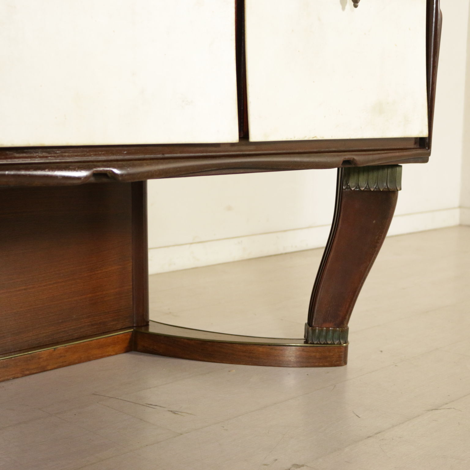 Móvil salón con puertas cóncava cubierta con papel pergamino; de chapa de madera, palo de rosa, perfiles, asas y adornos en latón.