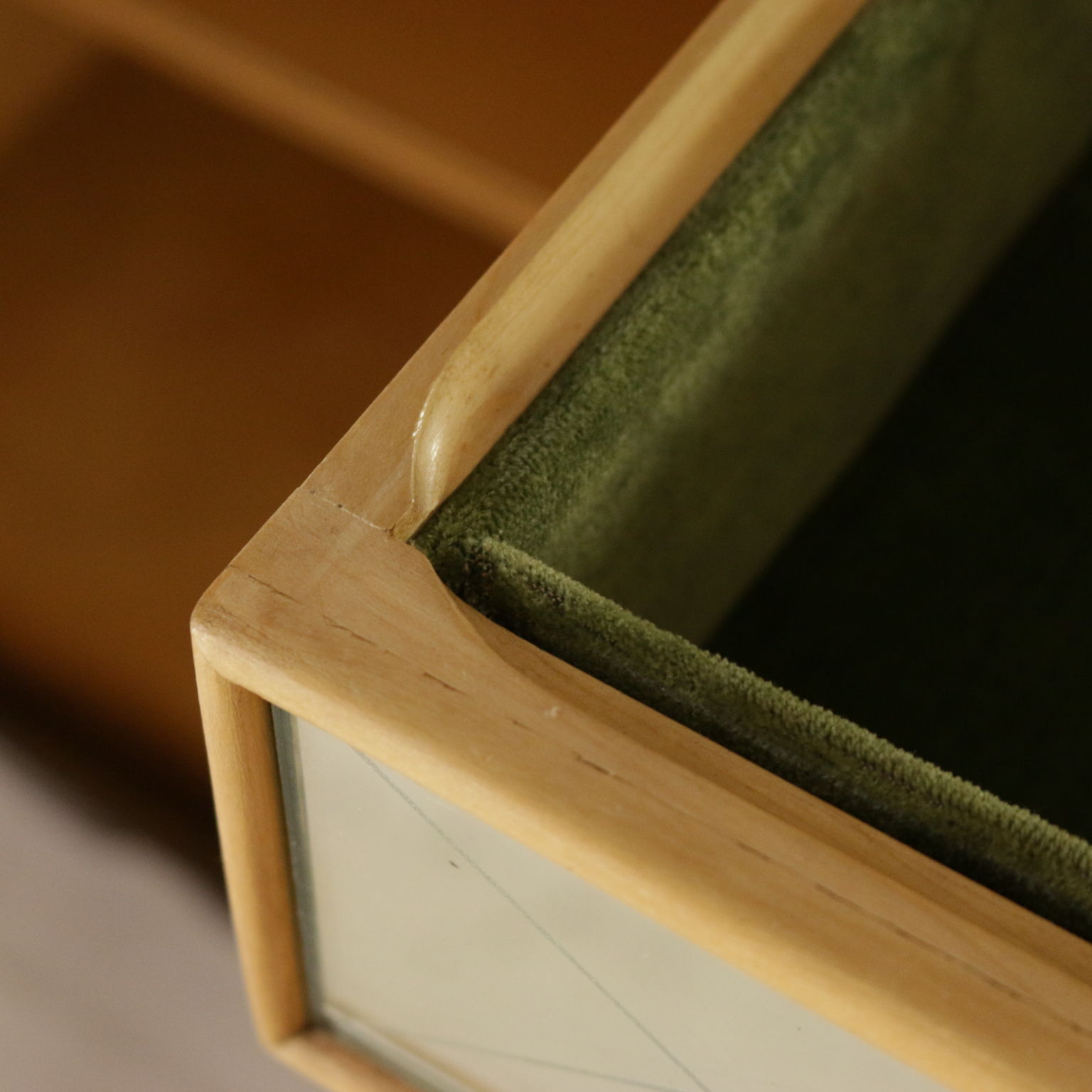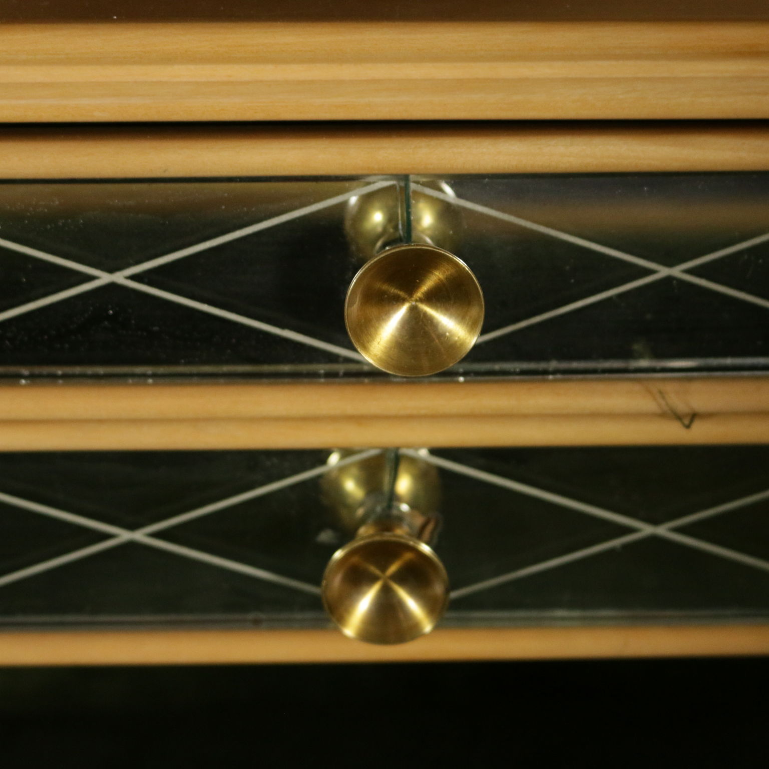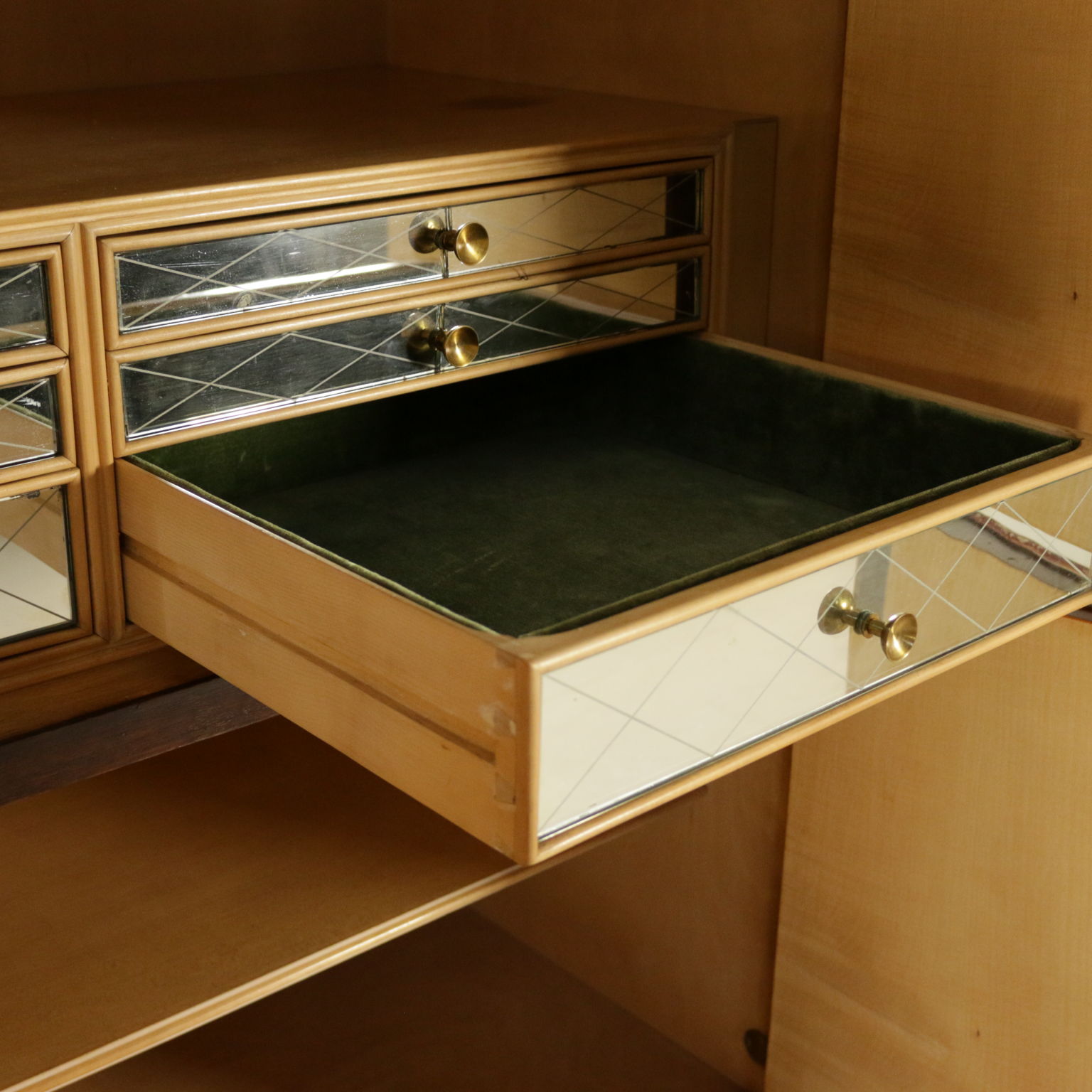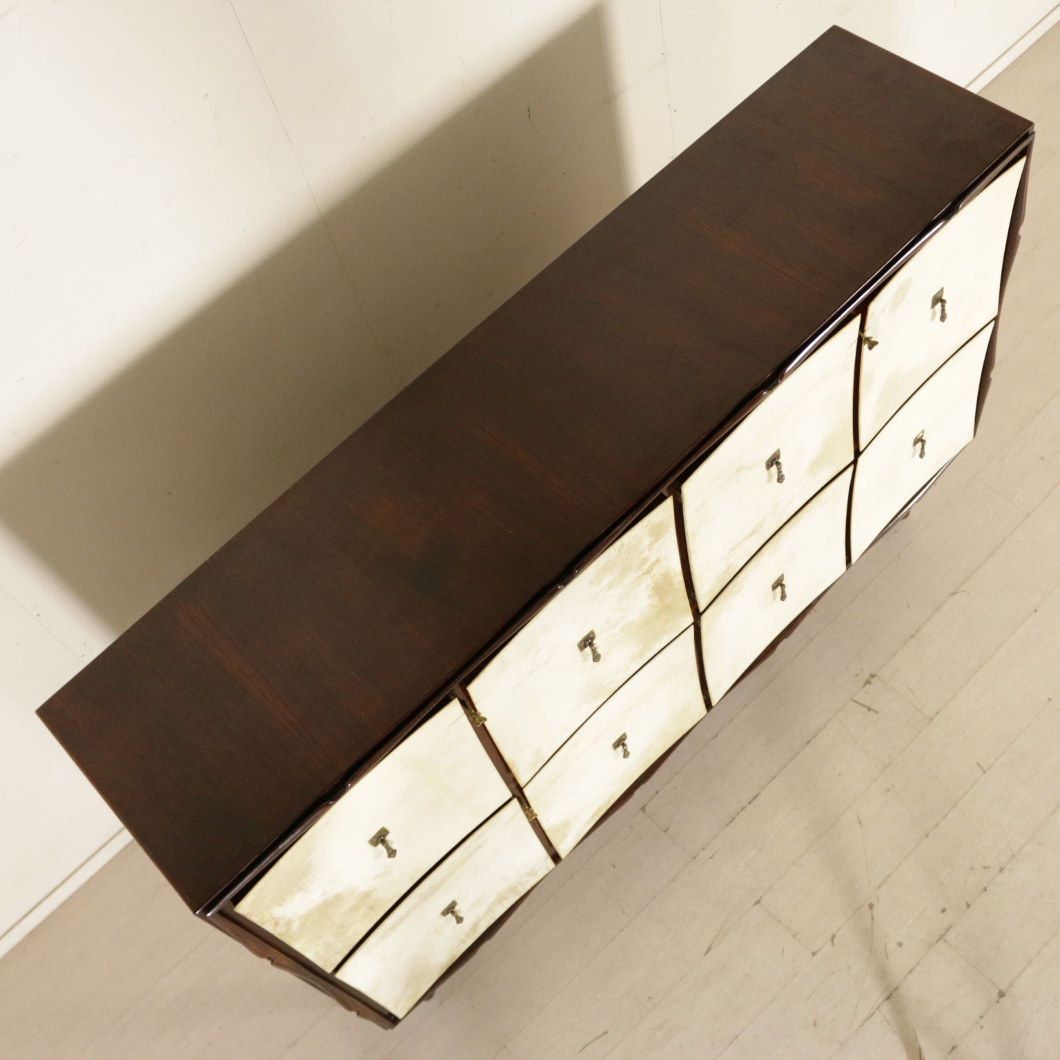 Móvil salón con puertas cóncava cubierta con papel pergamino; de chapa de madera, palo de rosa, perfiles, asas y adornos en latón.