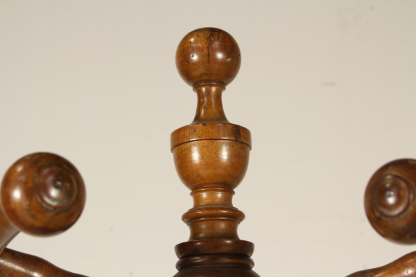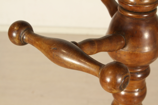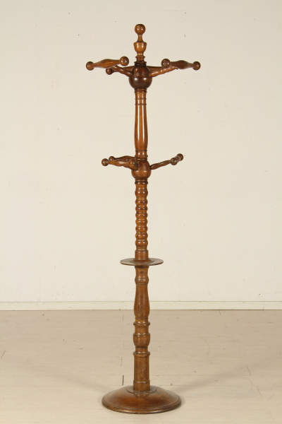 Suspensión en nogal. El apoyo de torneado vertical apoyada en base redonda. Colgador de vuelta.