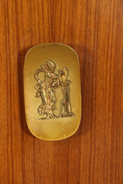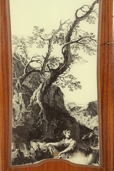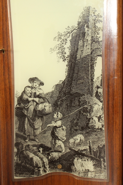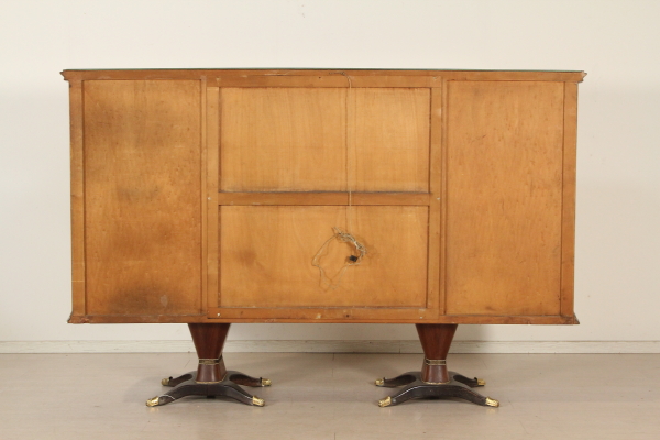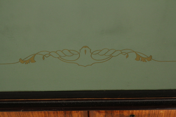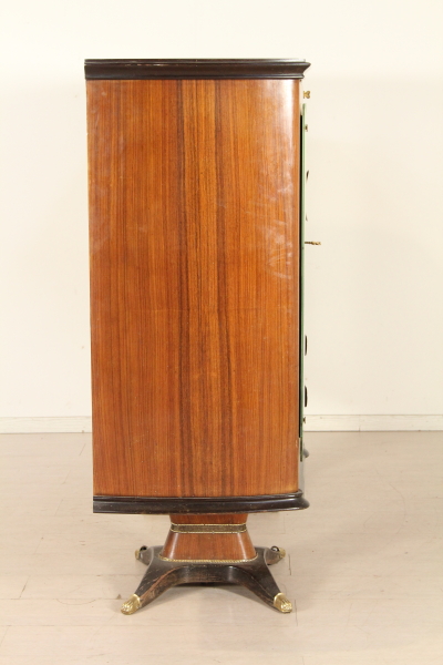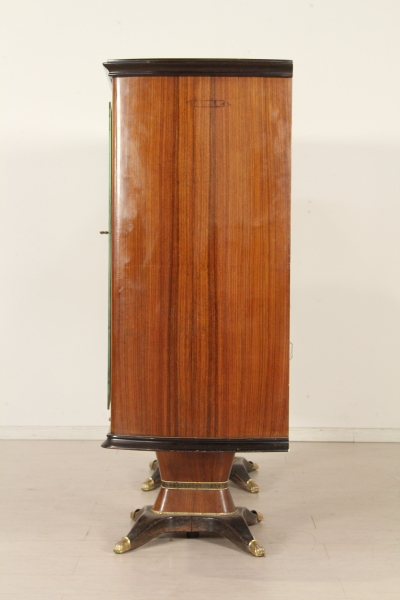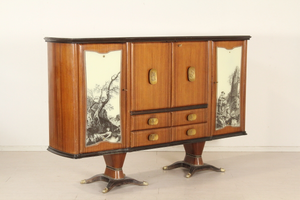 Móvil de 50 años. Muebles de madera chapada palo de rosa, vidrio trasero barnizado, manijas importantes y detalles de latón, paneles de vidrio esmerilado decorativo utilizados en las puertas. Buen estado, muestra poco signos de desgaste.