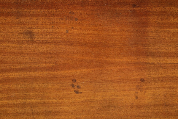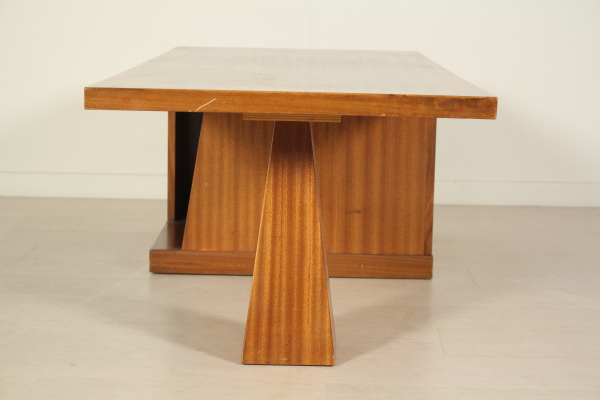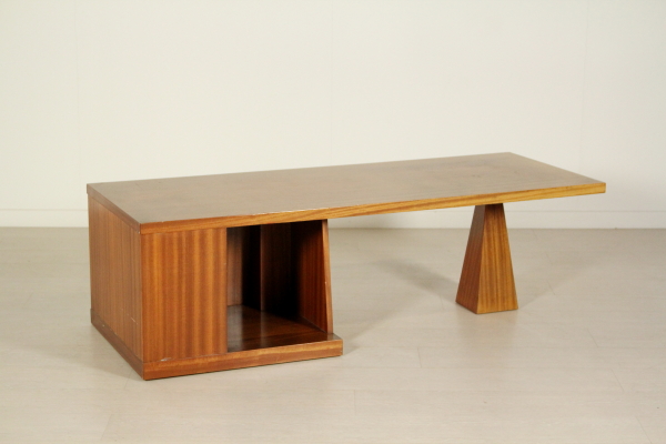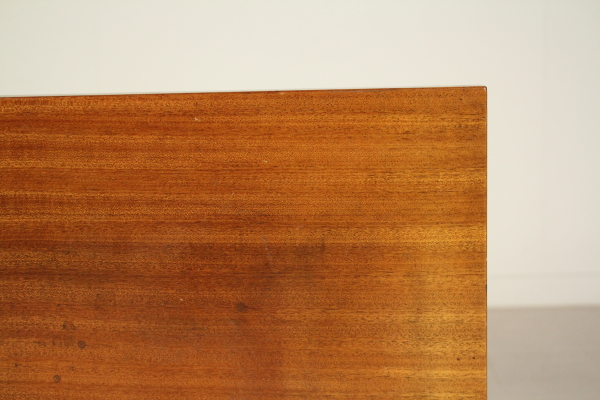 Tabla 50 ó 60 años. Tabla de península con compartimiento; Caoba madera chapada. Feria de condición, tiene algunos signos de desgaste.