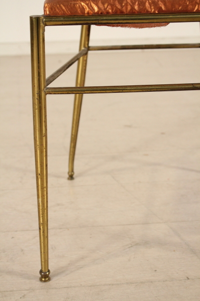 Par de sillas; latón, espuma, tela de tapicería. Regular estado de conservación, con algunos signos de desgaste.