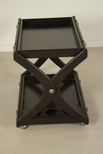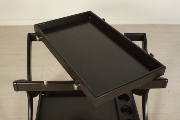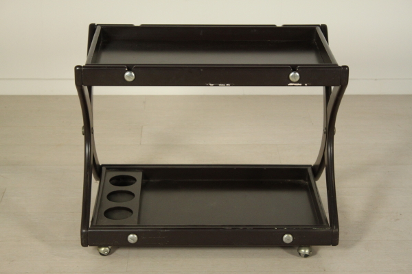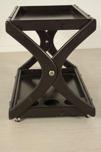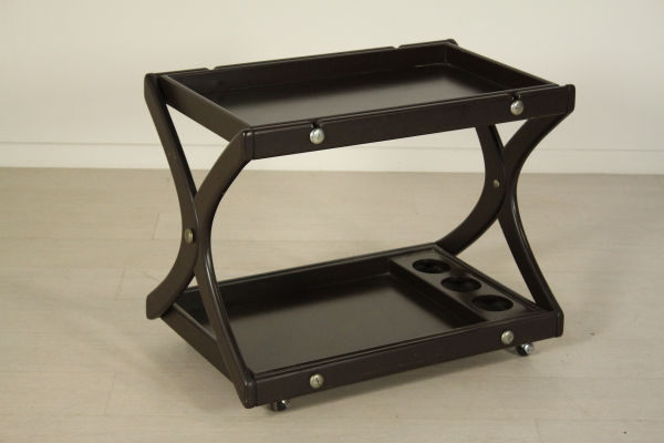 Carretilla de años 70-80. Carretilla de servir; madera de ébano manchado. Buen estado, muestra poco signos de desgaste.