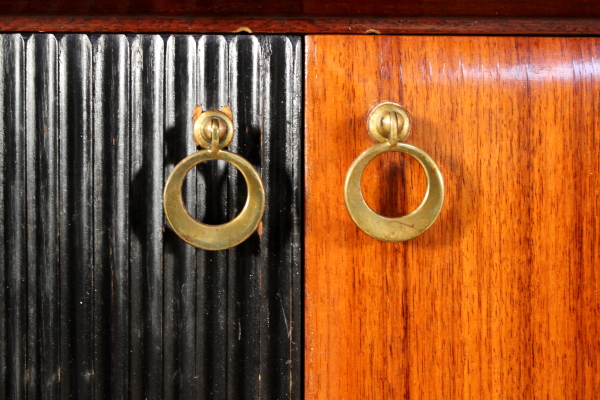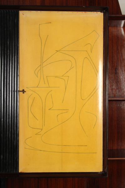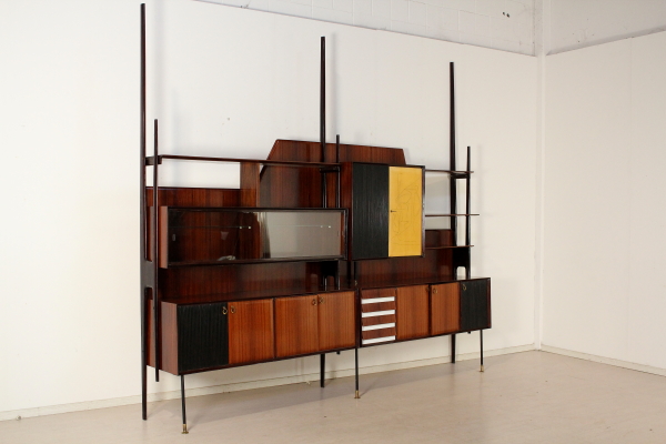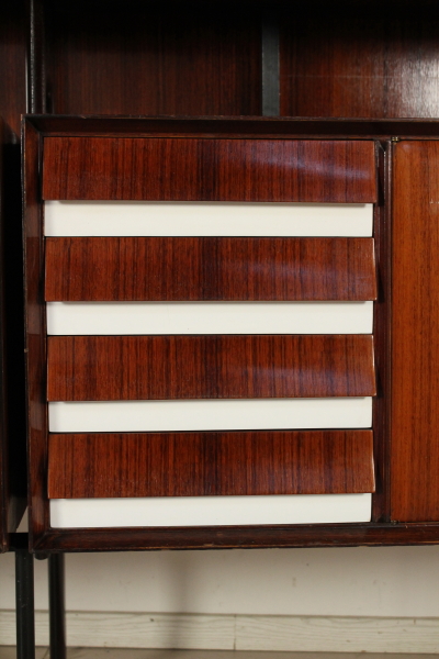 Móvil de 50 años. Muebles Lounge en chapado madera palo de rosa, los paneles grissinati y Panel con decoración, puertas correderas en cristal. Buen estado, muestra poco signos de desgaste.