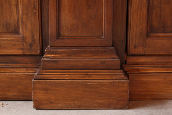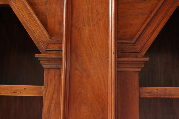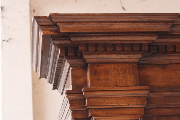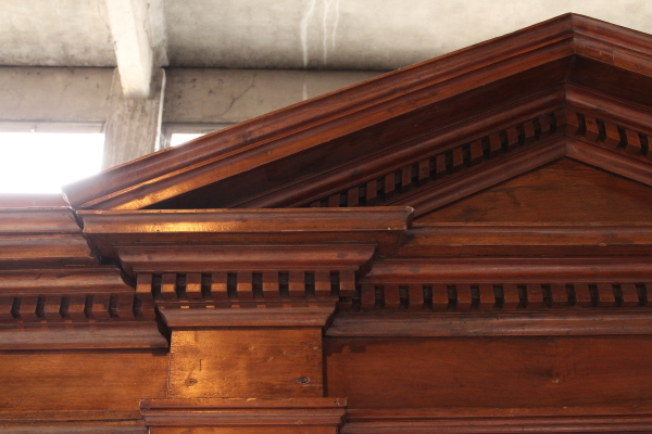 Montado en parte con material viejo. Hacia afuera del zócalo y cuatro montantes de pilastrati. Tiene tres puertas y tres compartimentos. Sombrero con sangría y forma el marco. El cymatium con centro.