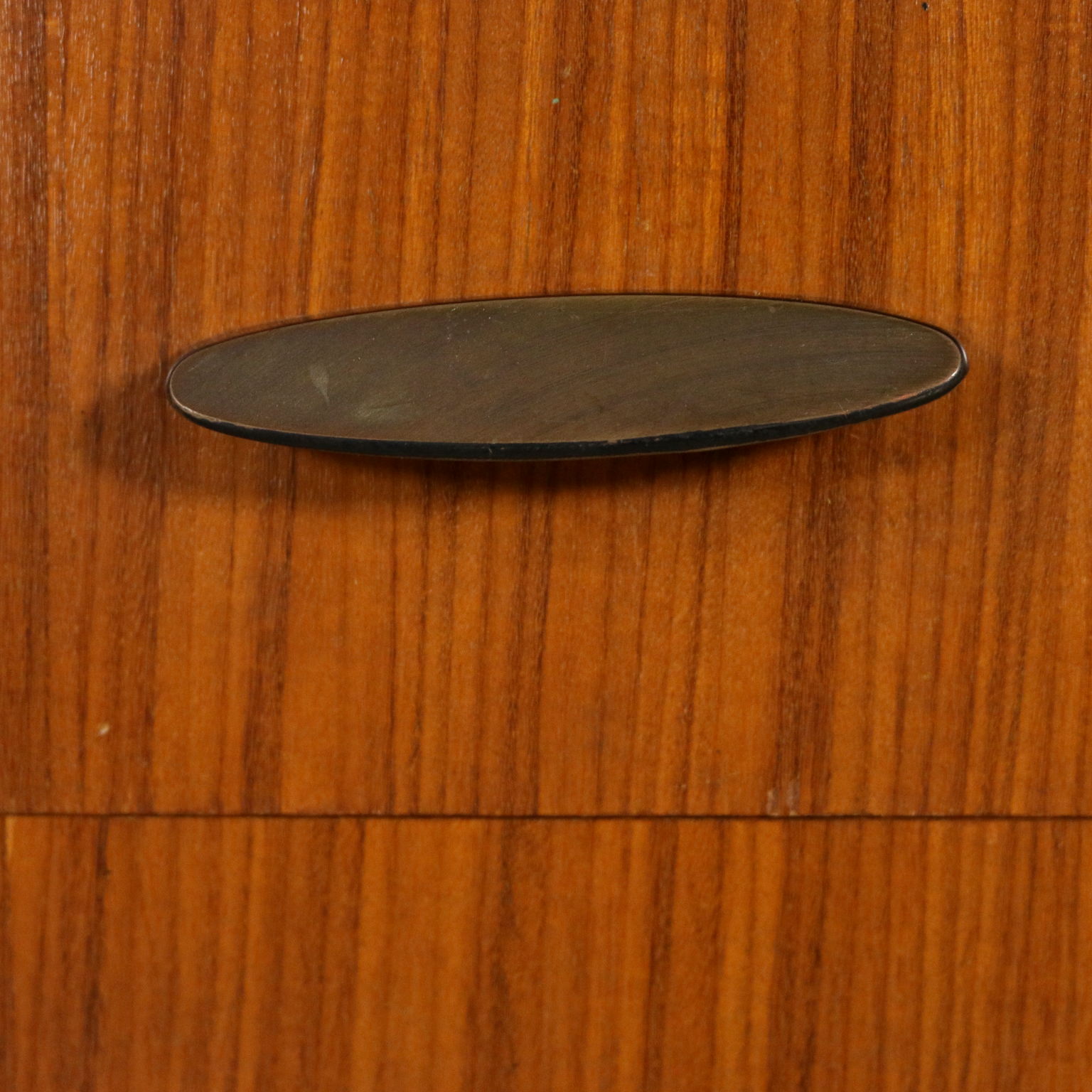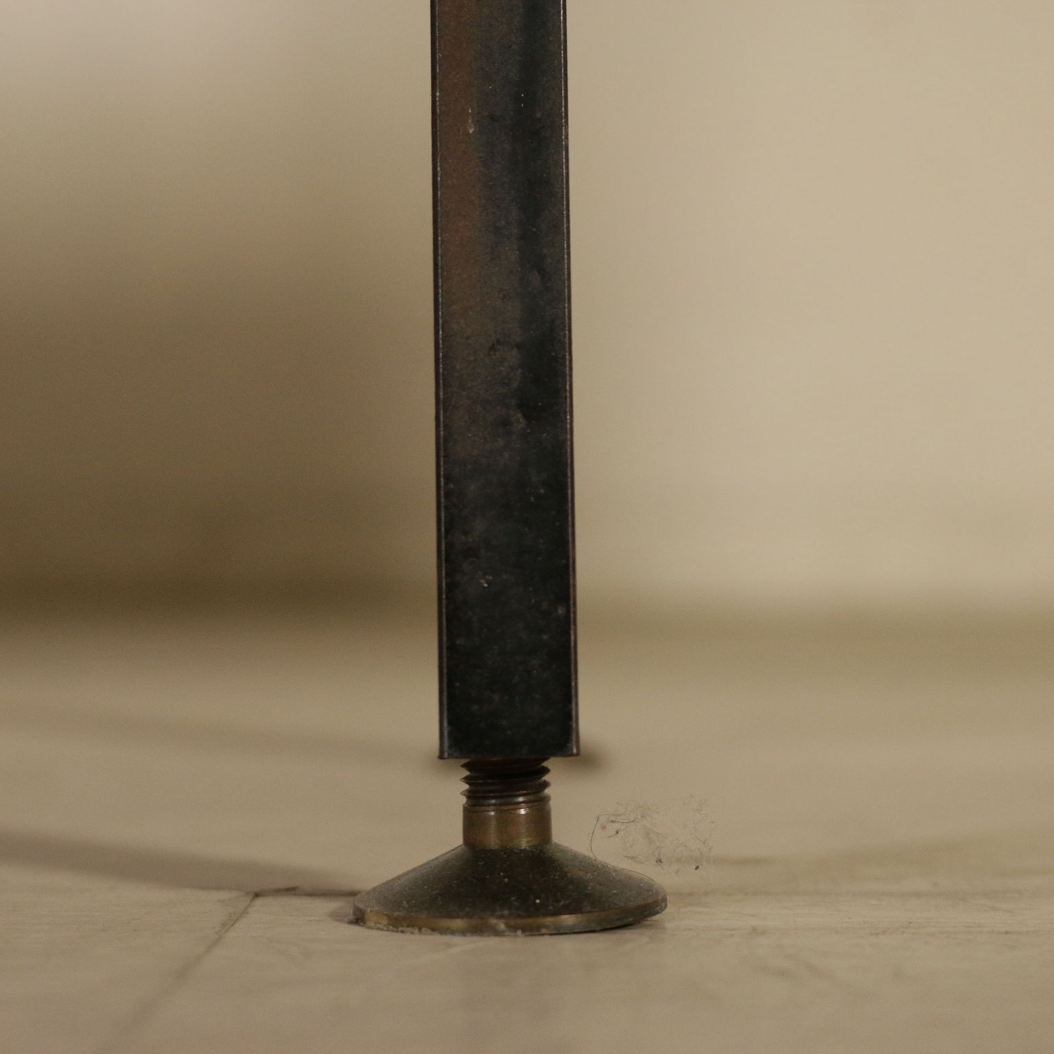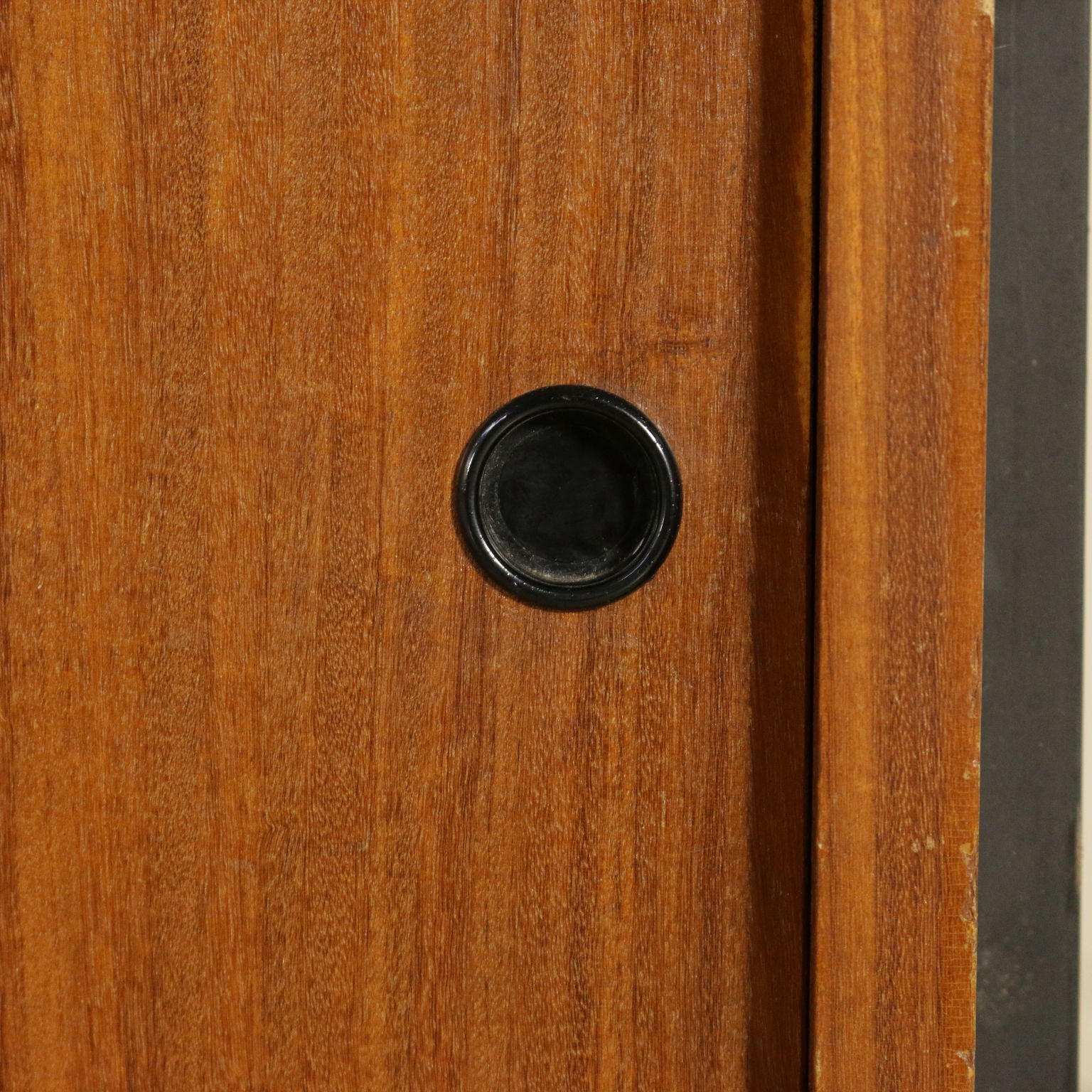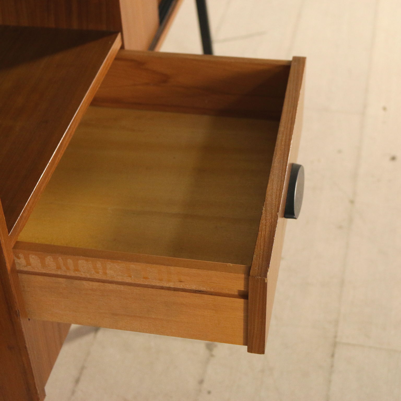 Libreria ad elementi a posizione regolabile; legno impiallacciato mogano, montanti in metallo.