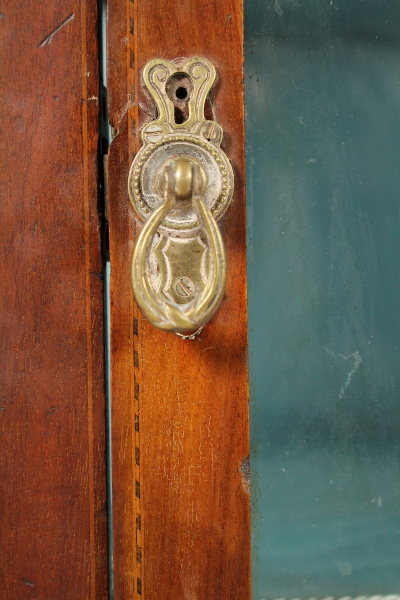 Puerta con vidrio y diadema con incrustaciones de volantes. Hilos de rosca.